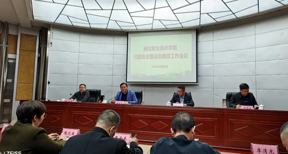 为全面落实中央、省、市关于校园安全和法治教育工作的要求,研判分析形势,安排部署工作。11月28日,学院召开2023年校园安全暨法治教育工作会议,学院党委书记谢友平,党委副书记、院长叶世森,党委副书记蔡军,纪委书记冯开猛,党委委员、副院长郑需勇出席会议。各处室(部、馆)负责人,各系党政负责人、学工处和保卫科全体人员、各系学生科长、全体辅导员参加会议,蔡军主持会议。