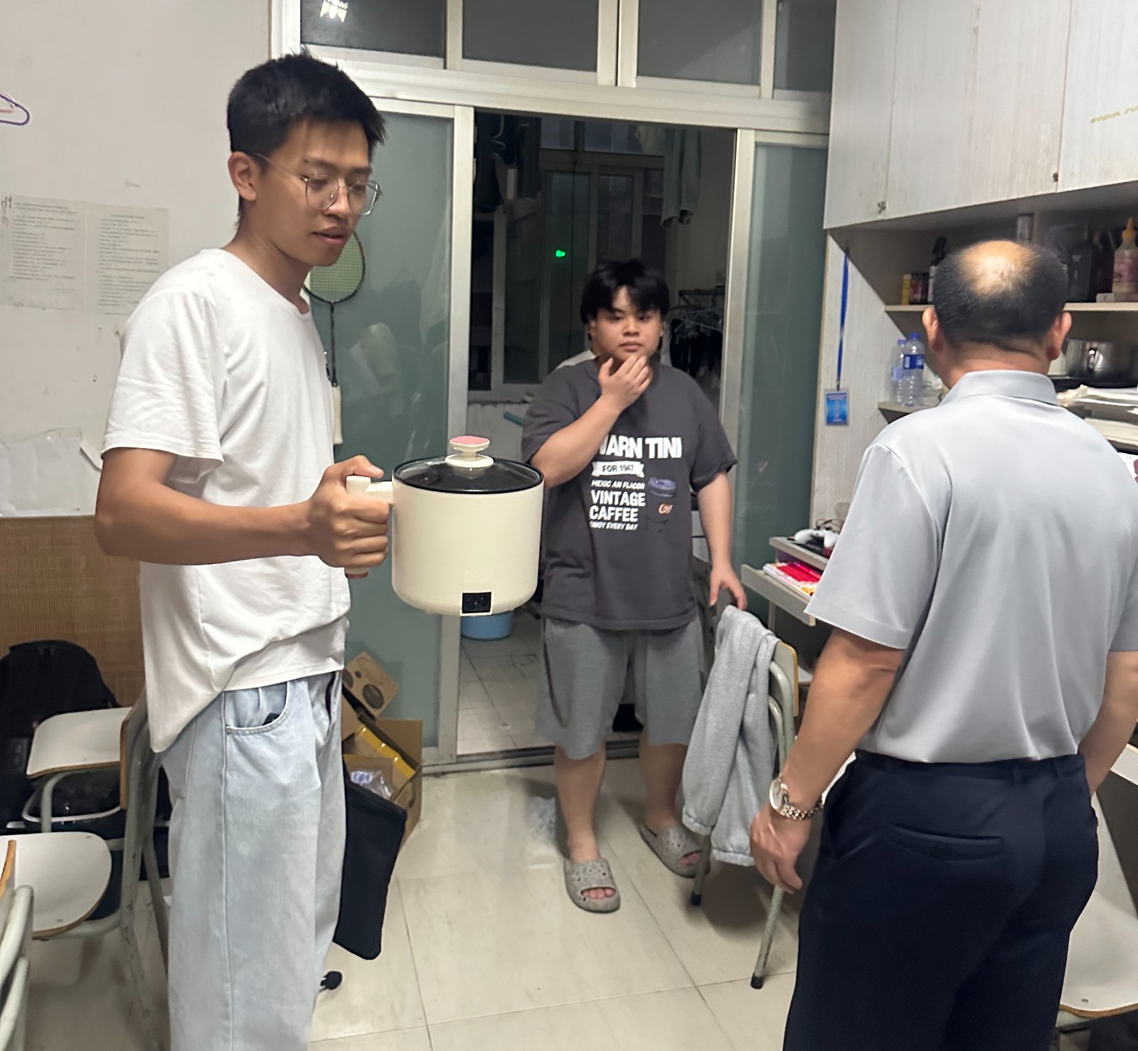 最后,郑书记带队分组深入食品系所有学生宿舍进行违规电器大检查。各小组对照学院安全隐患排查的要求和标准,对学生宿舍违规使用大功率电器、私接电源电线等情况进行全面排查,对违规物品进行暂扣处理,并对检查过程中发现的安全隐患问题进行整改。