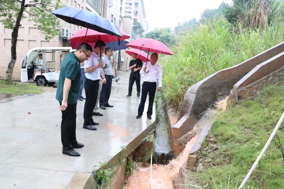 6月13日上午,学院党委书记张雄,党委副书记、院长叶世森带队开展校园汛期安全大检查,现场检查指导学校防汛减灾工作。