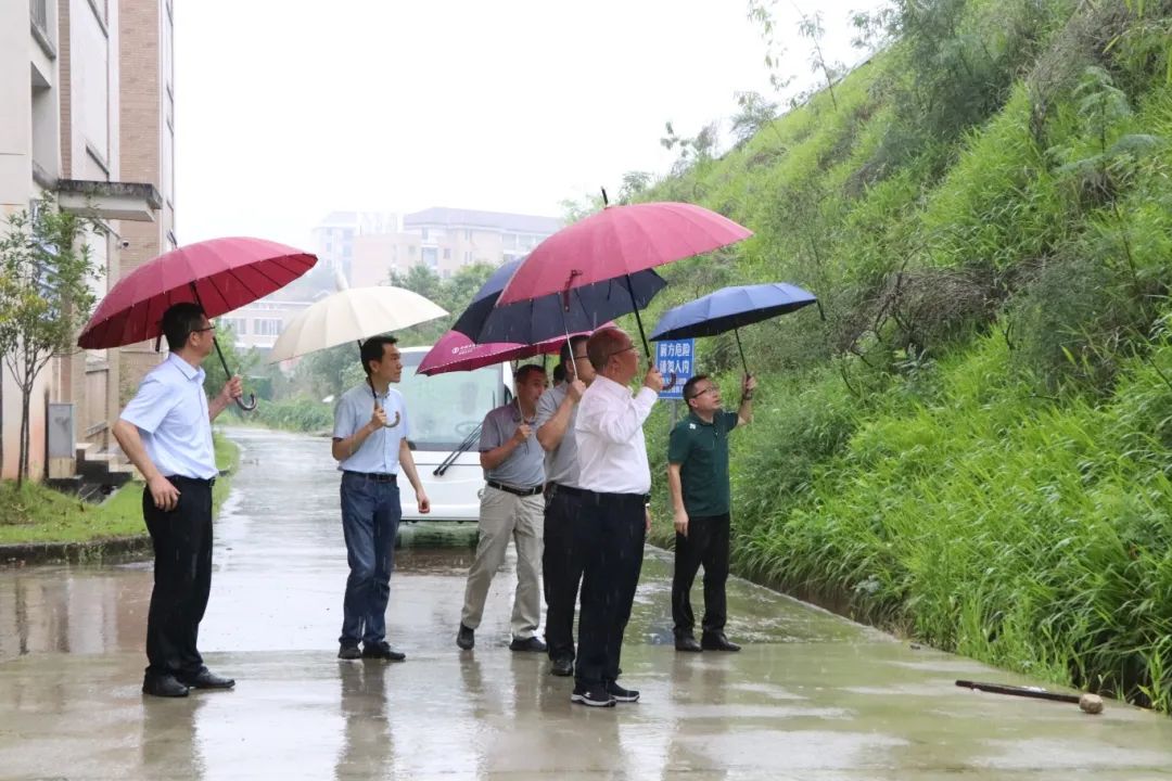 张雄一行先后察看了学生宿舍、教学楼、食堂等后山边坡排水、加固等情况。他强调,要进一步提高思想认识,坚决扛起防灾减灾的政治责任;要进一步压紧压实责任,坚决克服麻痹思想、松懈心理,始终绷紧防大汛、抗大洪、抢大险这根弦,严格执行防汛应急响应机制要求,落细落实各项防御措施;要进一步做好风险隐患排查和整改工作,加强专人巡查和严密监测,发现问题,及时沟通对接,迅速处置,第一时间消除隐患。