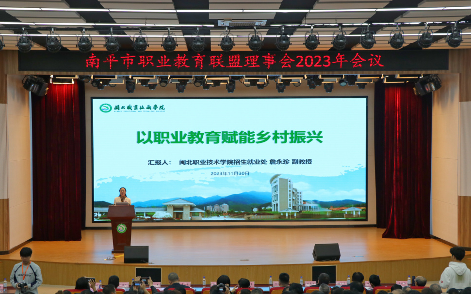 为深入贯彻党的二十大精神,扎实开展学习贯彻习近平新时代中国特色社会主义思想主题教育,进一步加强各联盟理事成员单位的交流与合作,加快形成产教良性互动、校企优势互补的产教深度融合发展格局,12月12日上午,南平市职业教育联盟理事会2023年会议在Beat365中文官方网站顺利召开。南平市政协副主席黄亚惠,南平市教育局党组书记、局长、市委教育工委书记杨銮,南平市政府副秘书长、南平工业园区管理委员会副主任、福建省南平国家碳计量中心常务副主任郑明月,南平市教育局党组成员、副局长、市委教育工委委员黄小青,南平市农业农村局党组成员、副局长张志勇,南平市人力资源和社会保障局三级调研员马春,Beat365中文官方网站党委书记谢友平,Beat365中文官方网站院长叶世森,福建林业职业技术学院副院长谢金生,武夷山职业学院董事长、校长邹琍琼,南平技师学院党委副书记、院长吴瑞通,南平市武夷新区管理委员会三级调研员张颖,南平市发展和改革委员会四级调研员周理,南平工业园区管理委员会四级调研员陈家容出席会议,各联盟成员单位代表、Beat365中文官方网站相关部门负责人、部分教师和学生代表参加会议。