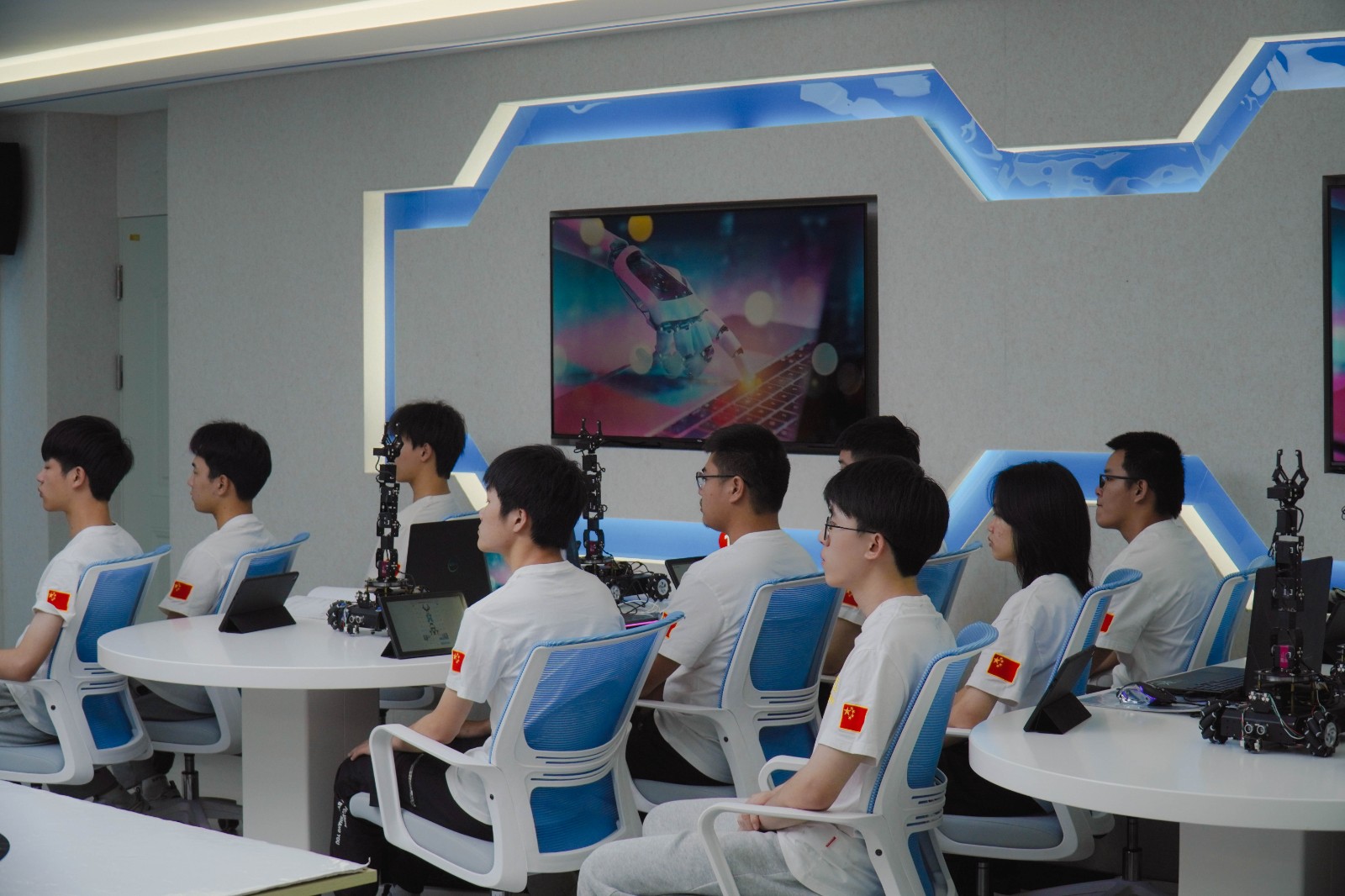 本次示范课展示由食品系郑辉红老师主讲,课题是《超声波传感器的避障应用》,本次课采用理实一体化教学,以任务驱动的方式,将超声波传感器的理论知识融合进智能搬运机器人的避障功能应用,充分展示了机电一体化技术高水平专业群的课堂改革建设成果,充分展现课程的趣味性、实用性和先进性。