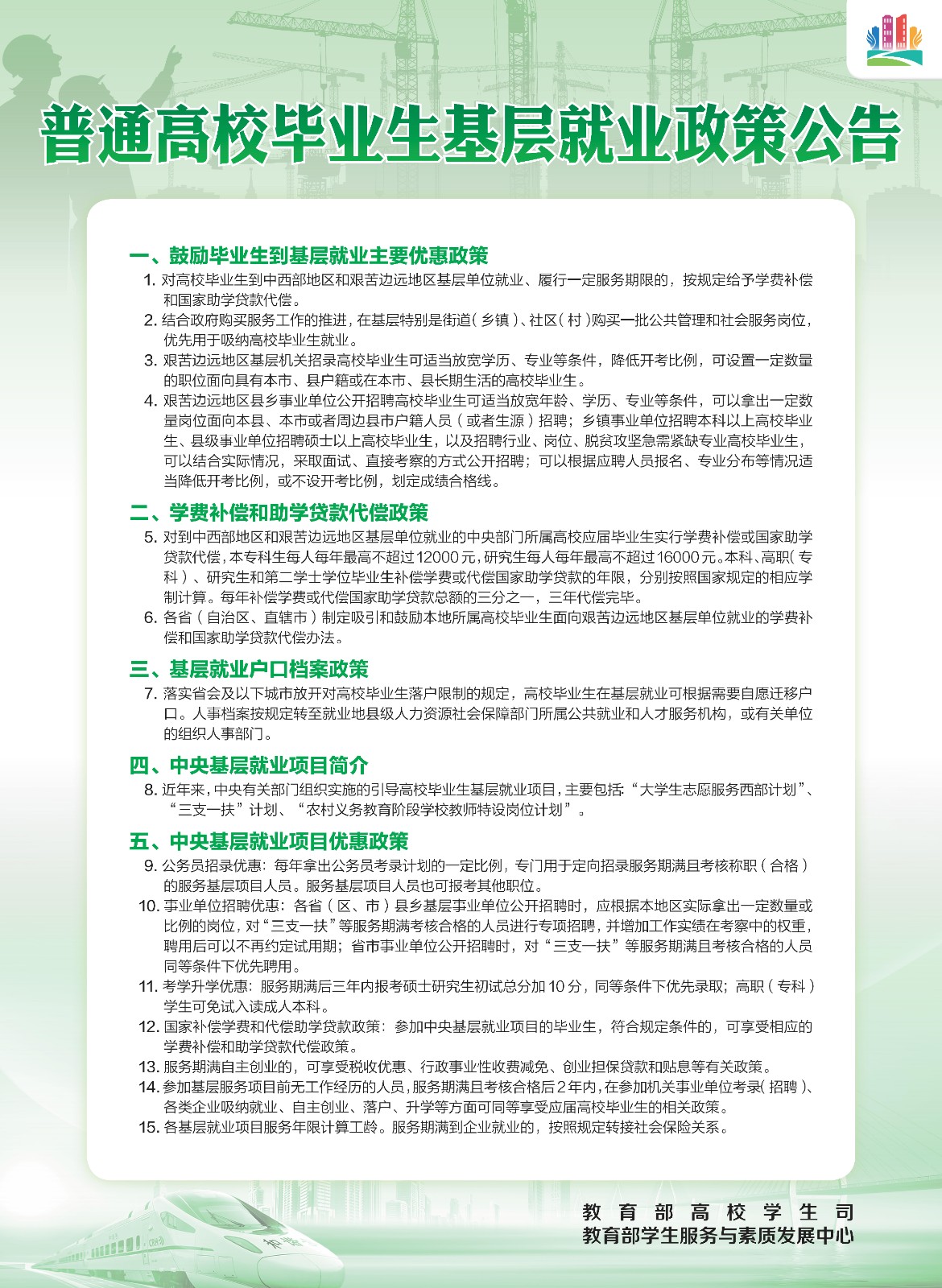 普通高校毕业生就业政策公告