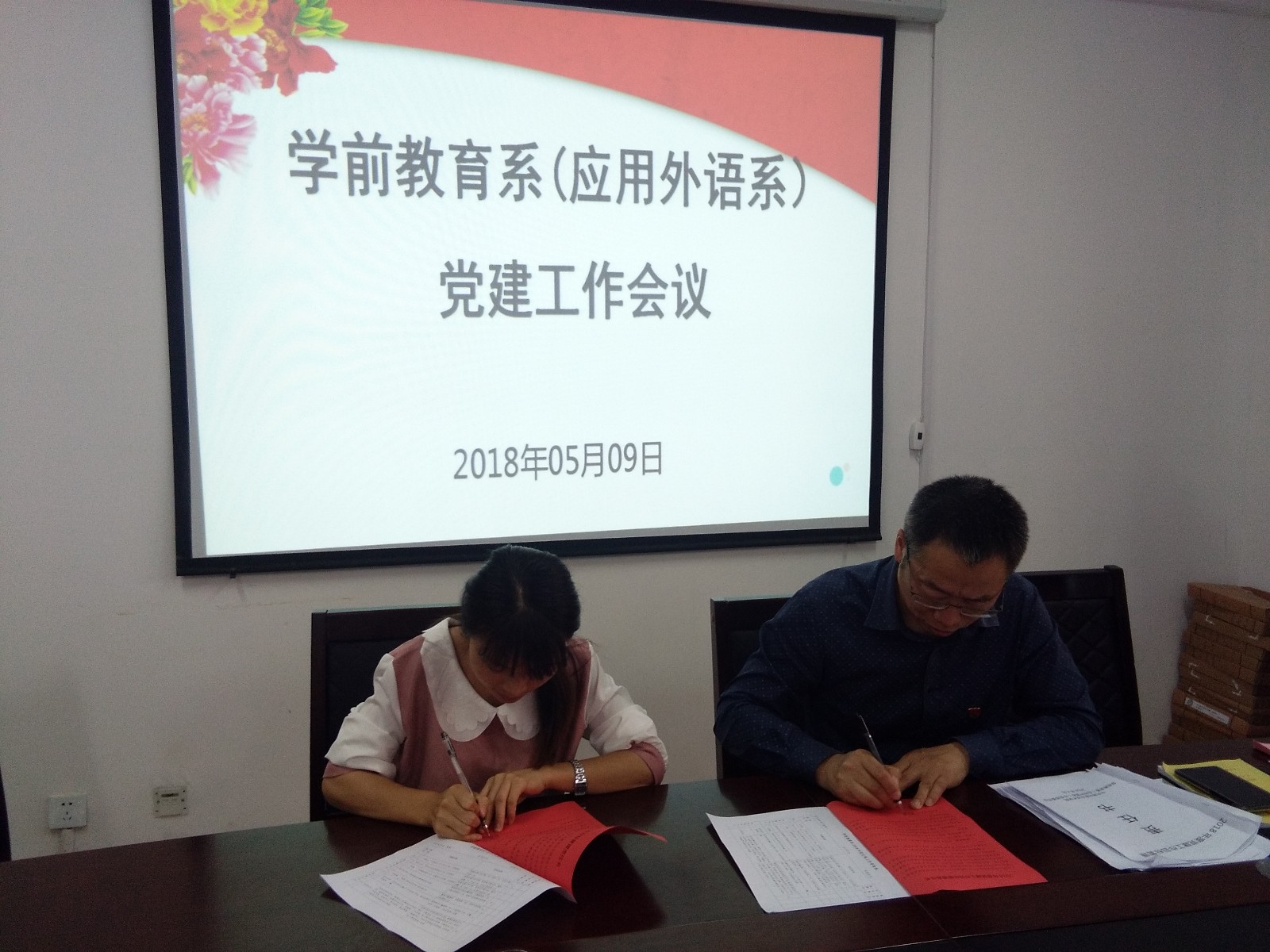 接着,鞠建恩书记部署系部2018年党建重点工作,与三个支部书记分别签订了“2018年党建工作目标管理责任书”。最后,每个党员都签订了“2018年党员个人党风廉政承诺书”。