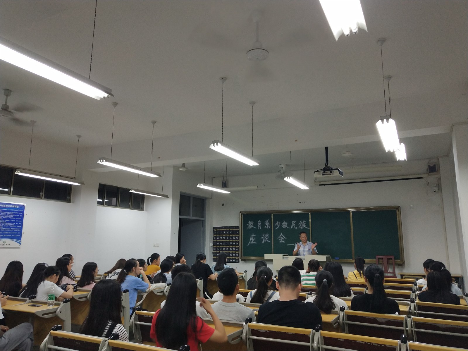 鞠书记代表教育系感谢同学们把自己的家乡、自己的民族文化介绍给大家,感谢同学们为学校建设发展提出了宝贵意见和建议。同时就如何成为优秀的少数民族大学生向同学们提出三点建议:一是要深入挖掘本民族优秀文化,增强民族自豪感;二是要坚持四个自信,特别是文化自信,要做优秀民族文化的传承人,弘扬本民族文化精神;三是要共同进步,促进中华民族家庭大融合。