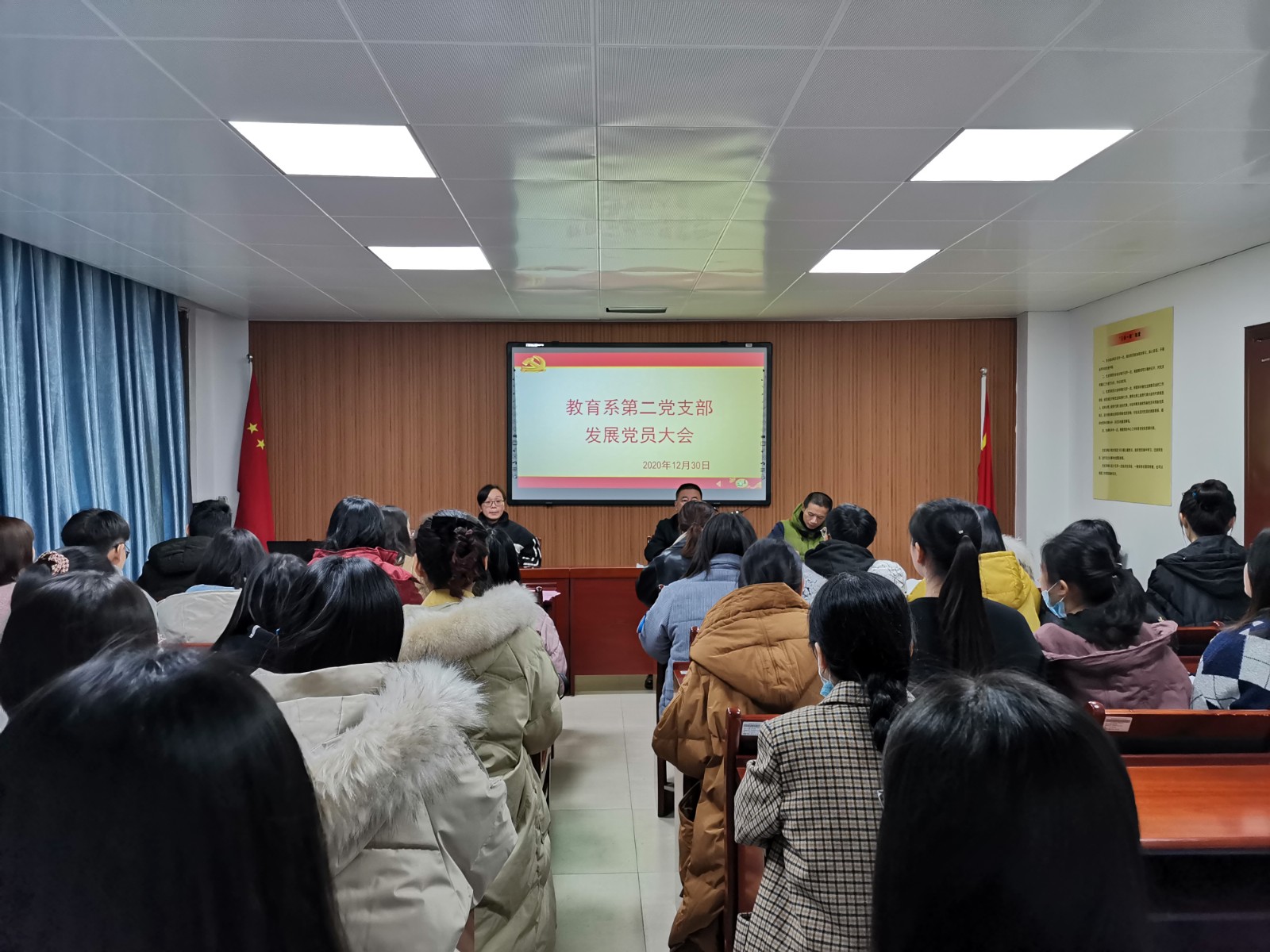 2020年12月30日晚上,教育系第二党支部在行政楼610会议室召开发展党员大会,专题讨论研究柳莹等27名同志的入党问题。教育系第二党支部全体党员、发展对象和积极分子代表参加了此次会议,会议由教育系第二党支部组织委员刘彩云同志主持。