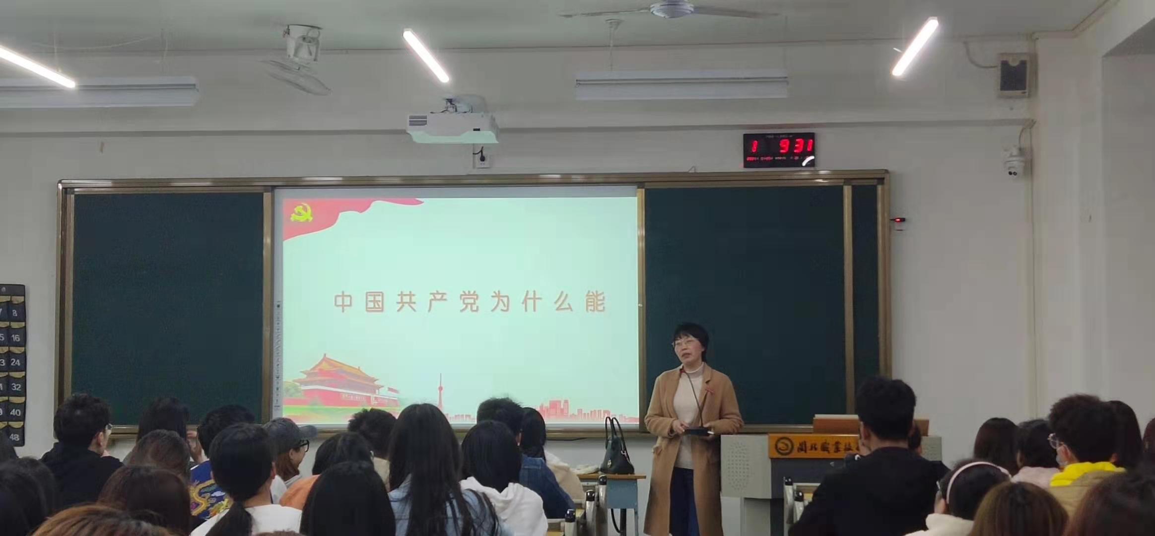 2021年3月24日,教育系党总支书记李清龙、系主任张完英为教育系学生上了一堂题为“共产党为什么能”的思政课。