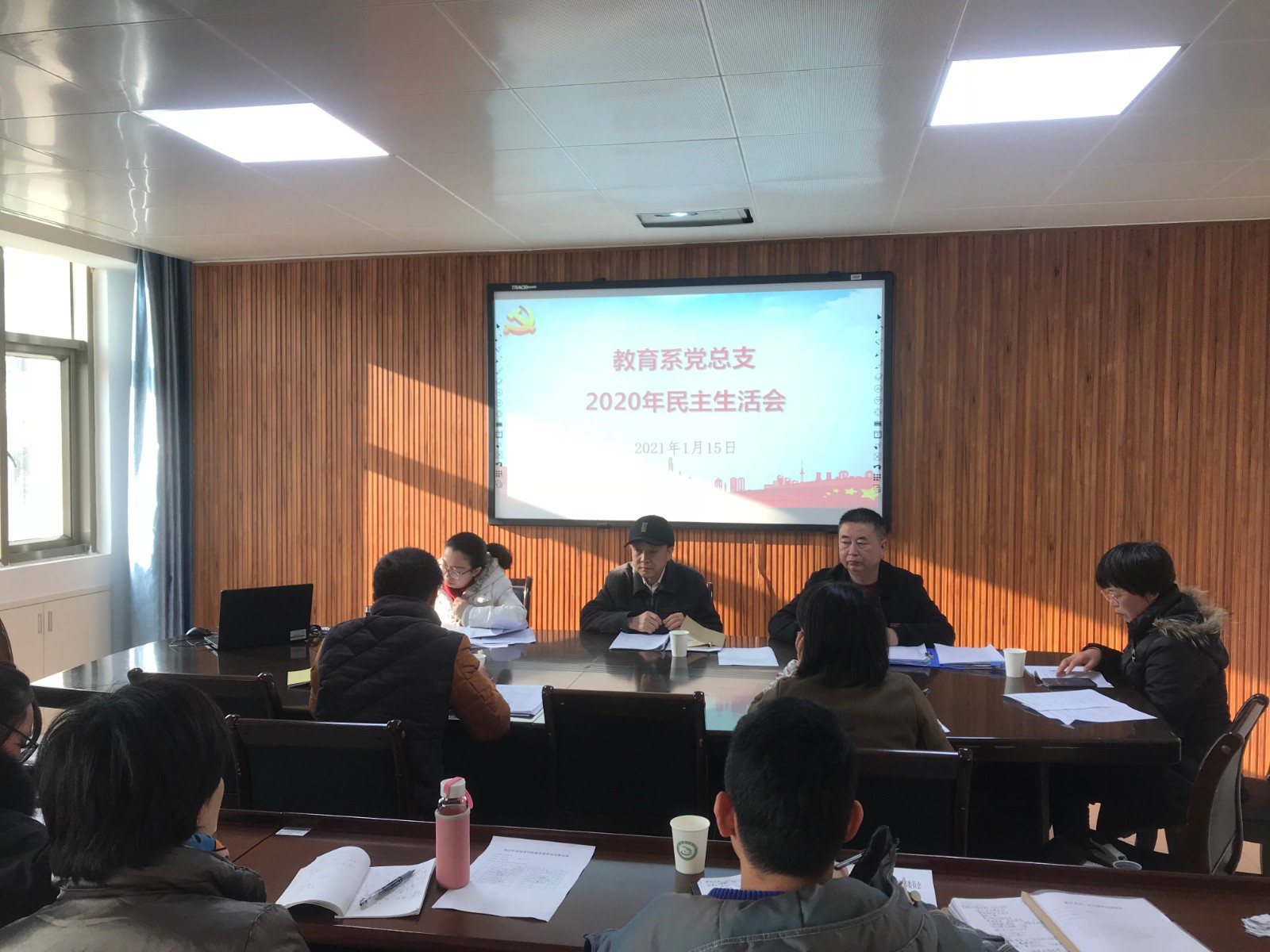 教育系党总支按照上级党委的要求,于2021年1月15日下午,在行政楼507会议室召开了2020年度民主生活会。学院挂点领导院党委陶金辉副书记出席会议,纪检监察审计处郑定华处长、党委宣传部康夏静副部长到会督导,会议由系党总支负责人李清龙同志主持。