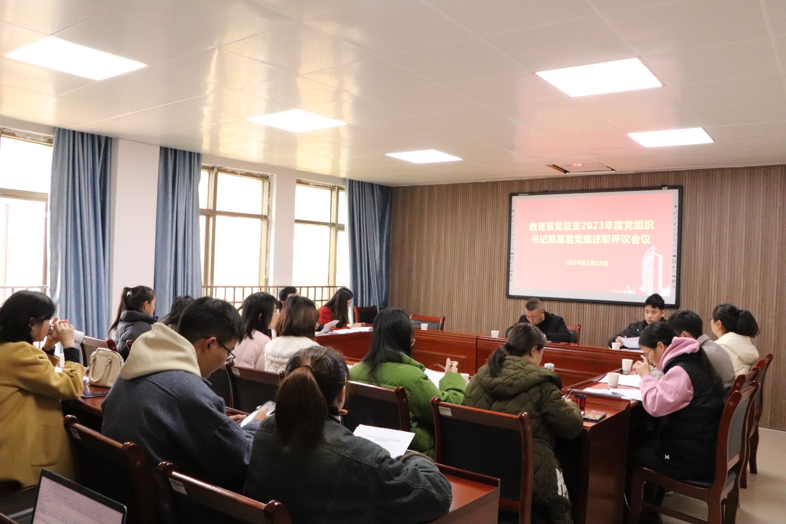 2024年1月18日上午,教育系党总支2023年度党支部书记抓基层党建工作述职评议考核会议在607会议室召开。教育系全体党员参加了本次会议。