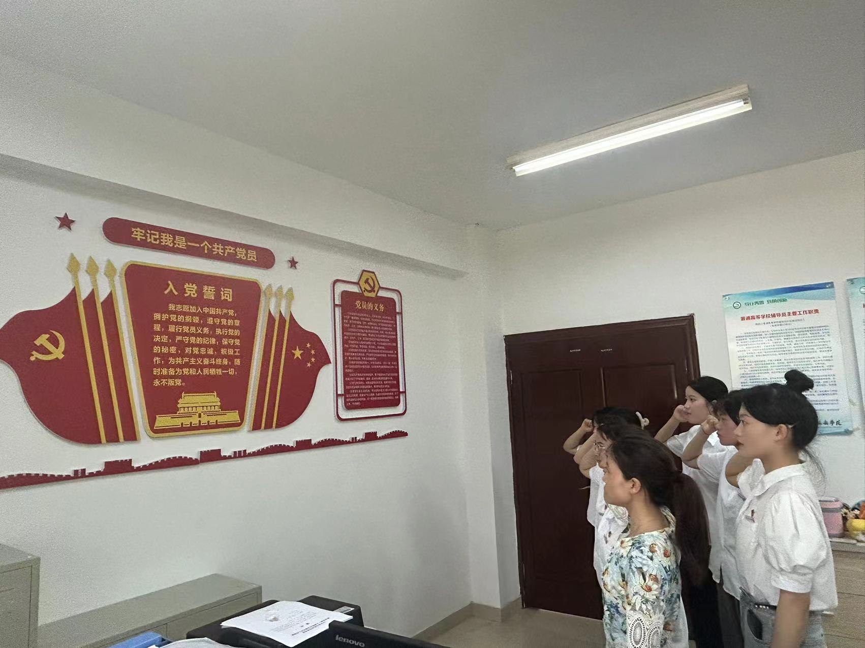 活动在国歌声中拉开序幕。随后,开始了第一项活动)——重温入党誓言活动,全体党员面向鲜红的党旗,高举右拳,由领誓人带领,庄严宣誓:“我志愿加入中国共产党,拥护党的纲领,遵守党的章程……”铿锵有力的誓言在会场回荡,每一句都饱含着对党的无限忠诚和对人民的深情厚谊。此次重温入党誓言活动,不仅是一次心灵的洗礼,更是一次精神的升华。它激励着每一位党员在新时代的征程上,不忘初心,砥砺前行,为教育系和学院的高质量发展贡献力量。
