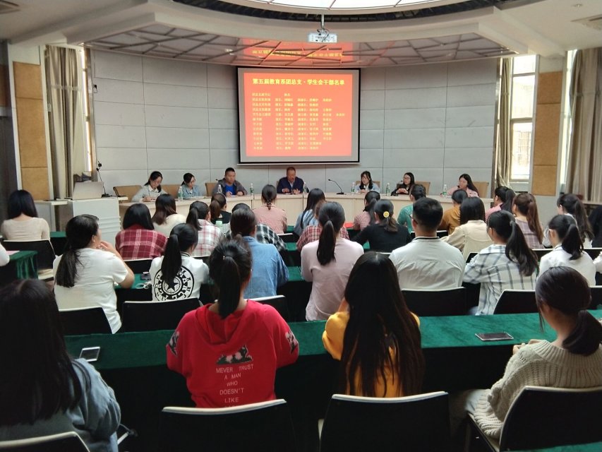 2018年10月12日,Beat365中文官方网站教育系第五届团总支·学生会换届仪式在行政楼一楼报告厅隆重举行。出席本次会议的有:教育系党总支书记鞠建恩、辅导员刘彩云、陈巧玲、杨丹、林晓静、叶晶、王鹏发以及学生干部90余人。