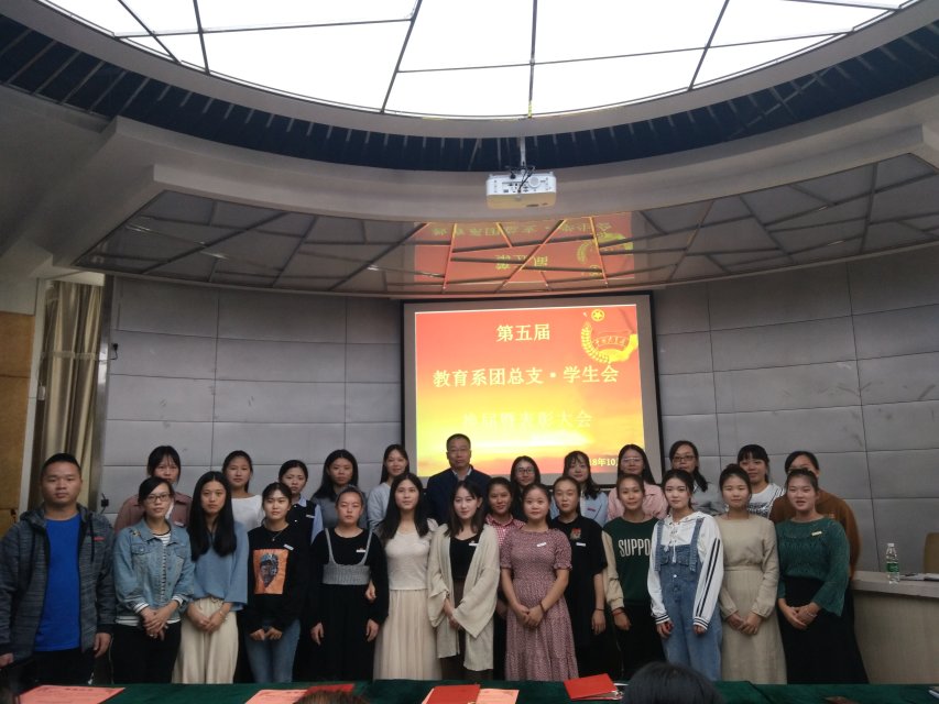 在现场热烈的掌声中,师生合影留念,圆满完成教育系团总支·学生会第五届换届仪式。