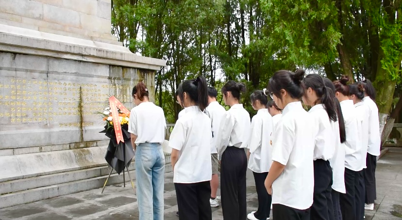 埋骨何须桑梓地,人生何处不青山。实践队队伍在“革命烈士英雄纪念碑”前肃穆站立,敬献花篮,并向长眠于此的革命烈士们默哀。