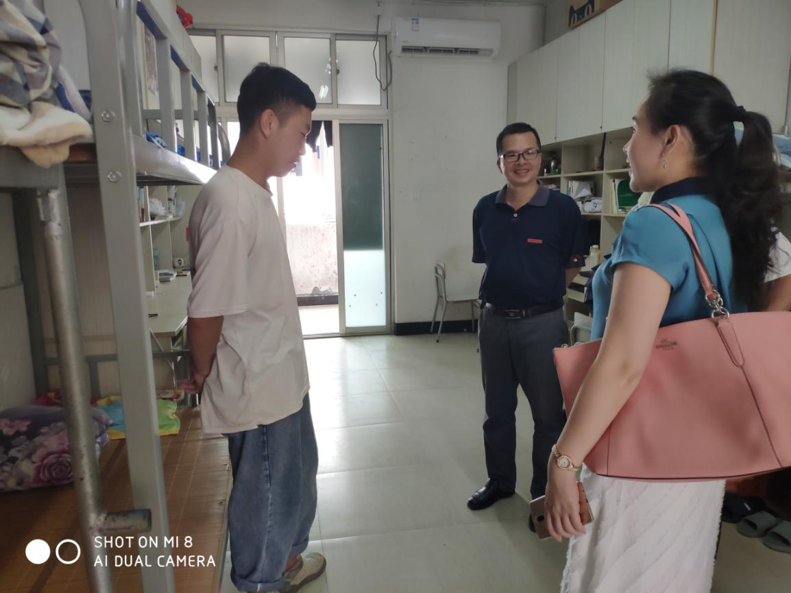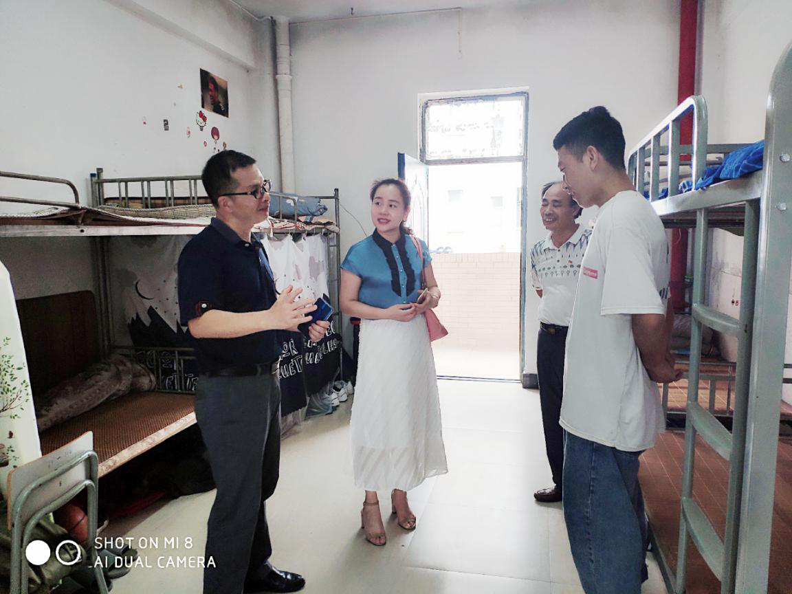 6月21日下午,安博科技常务副总陈黎黎在信息系、食品系主任张金良、常务副书记郑启阶以及学生科科长胡建辉的陪同下,来到受助学生罗布巴登宿舍。