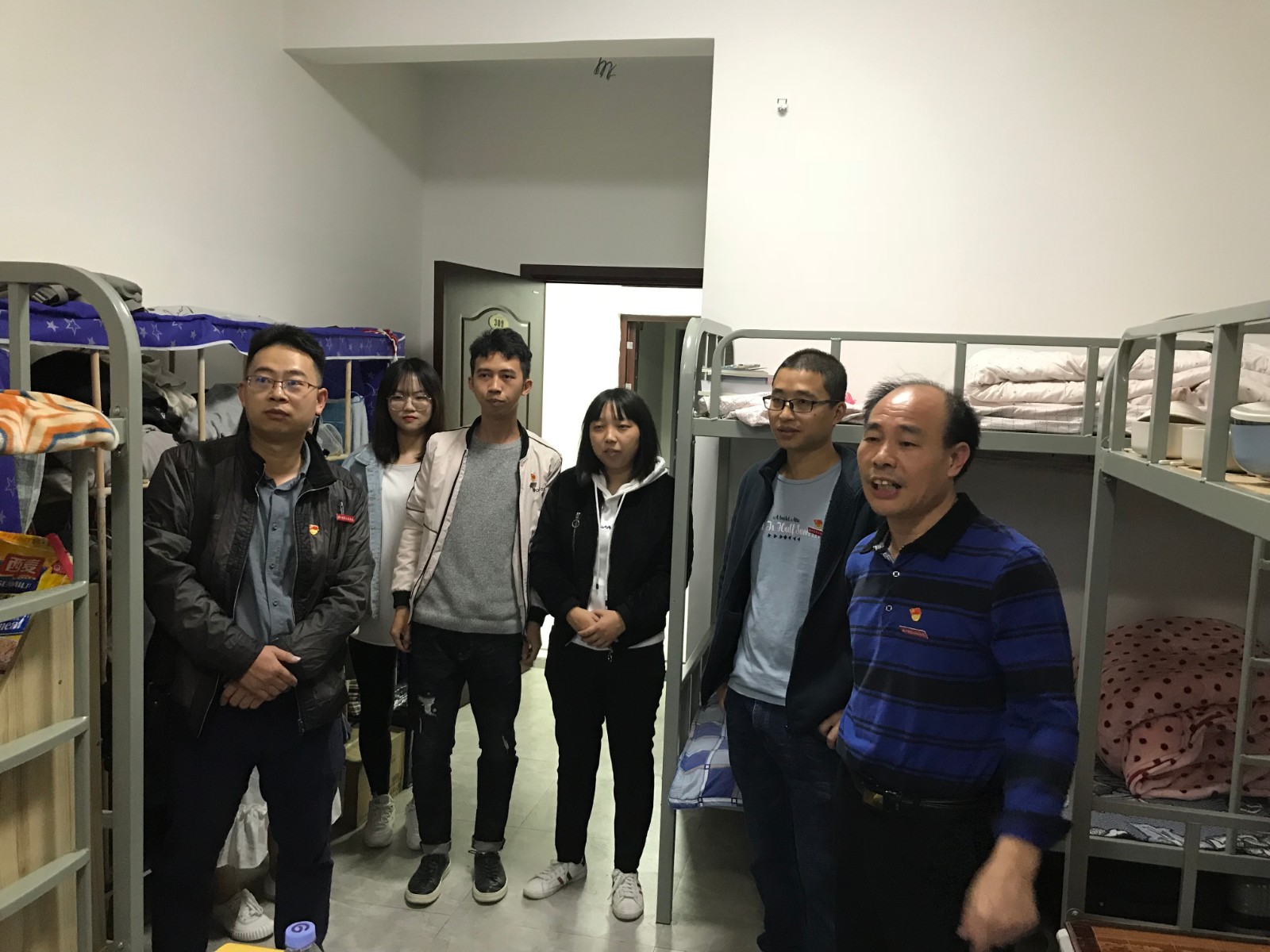 11月27号,我系郑启阶书记,学生科科长胡建辉、辅导员宋智伟、辅导员雷珊珊、班主任黄妙琳、班主任余雅芳对宿舍卫生、用电安全等方面进行走访检查。