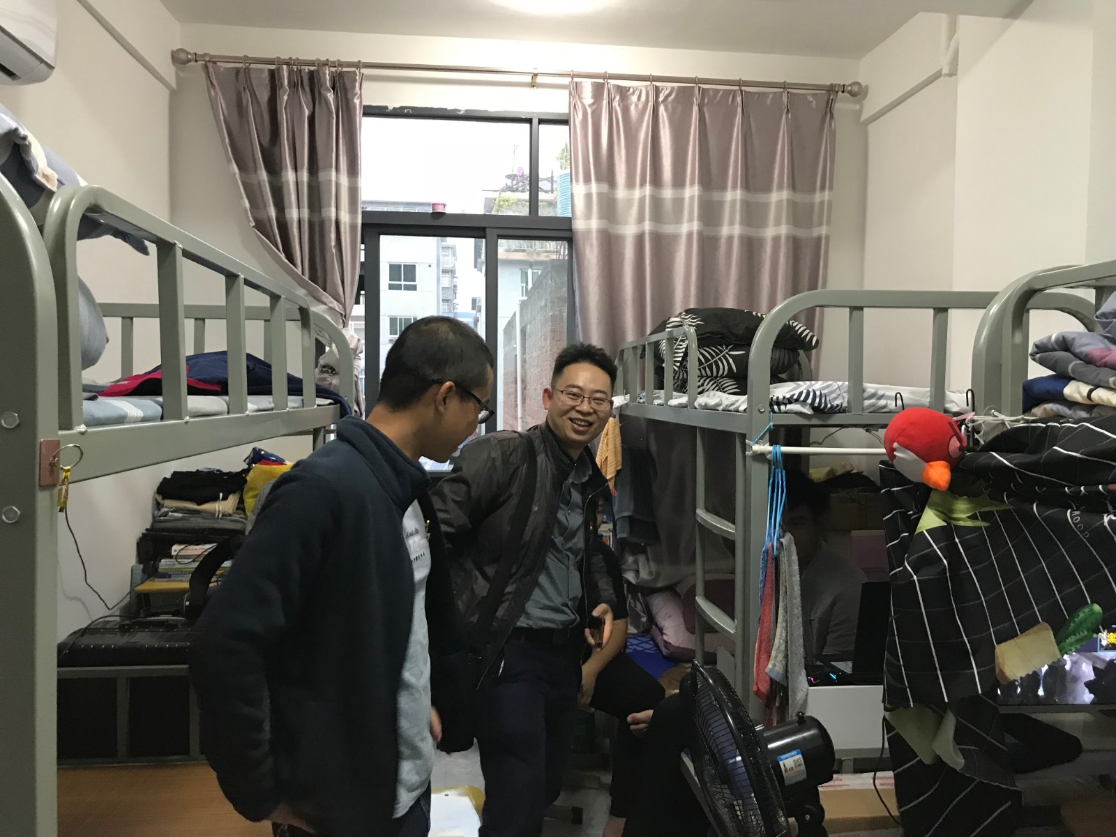 郑启阶书记与同学们亲切交谈,关心学生学习生活之余,也对宿舍内务整理以及用电安全做了一系列要求。