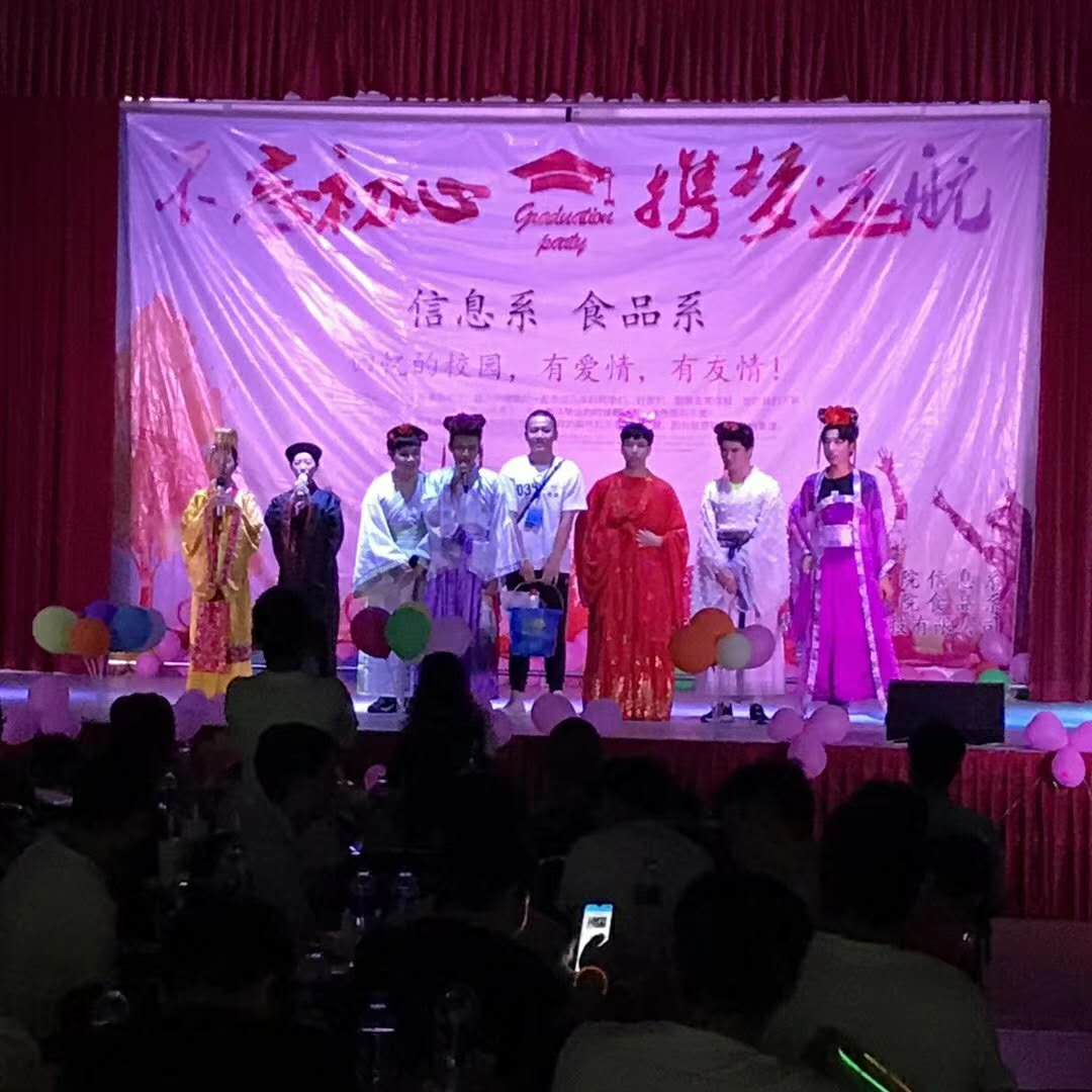 6月4日晚,由信息系、食品系主办,福州安博榕信息科技有限公司协办。“不忘初心,携梦远航”2019届毕业生欢送晚会在体育实训中心举办。18级软件技术专业的同学为毕业生献上了一个精彩的小品《甄嬛传反串》,赢得观众的一致喜爱。