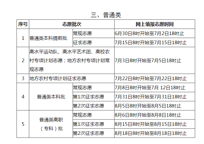 2021年福建省普通高等学校招生考生网上填报志愿时间安排表