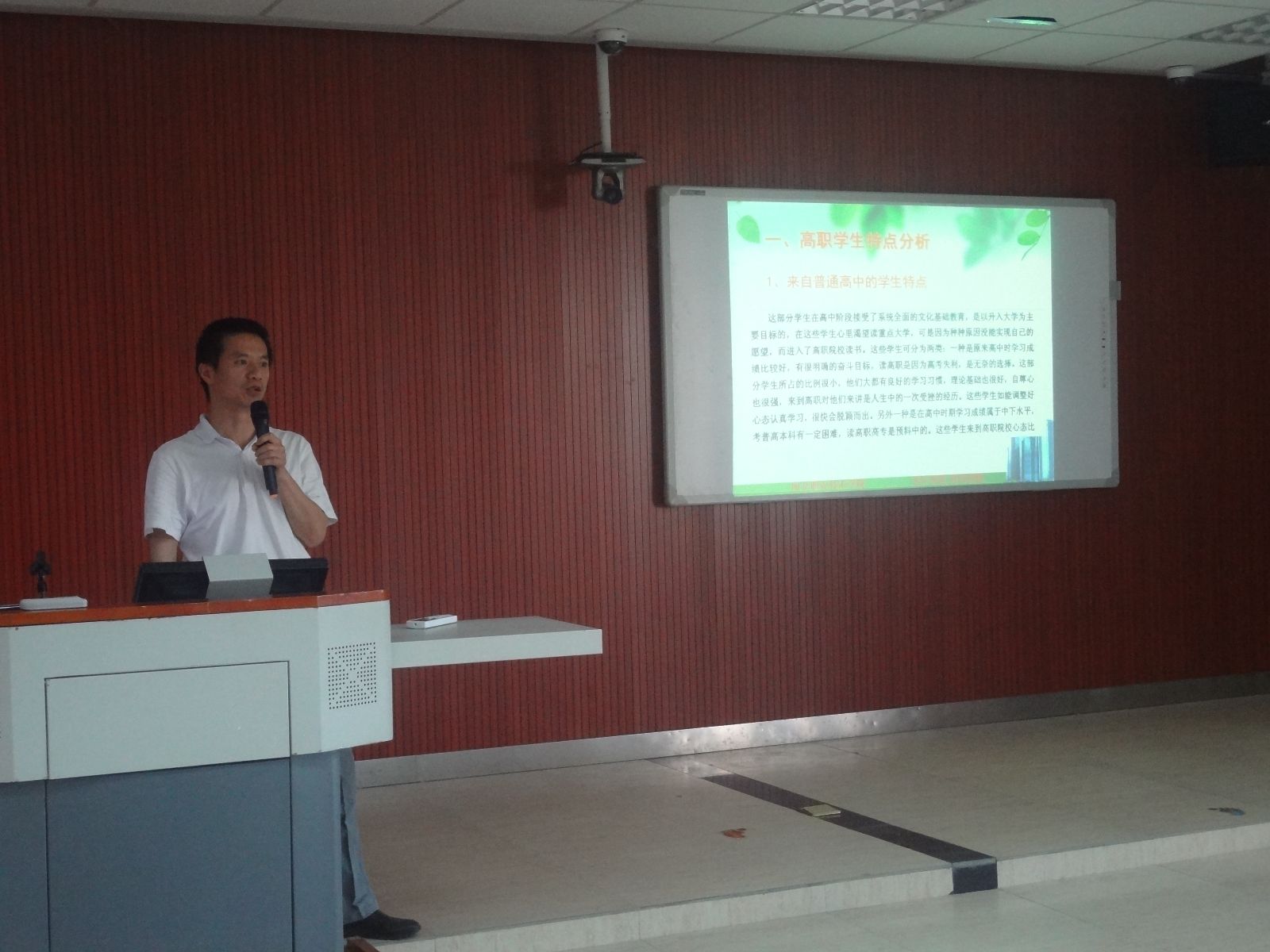 2015年5月13日下午,在学院实训楼一楼报告厅,我系教师系列培训工作继续开展。系学生科科长邱海松开办了“建立新型的师生关系”讲座。信息与工程系、食品与生物工程系全体教师参加了学习。讲座结合我系学生实际情况,从高职学生特点分析、高校师生关系的客观定位、构建和谐师生关系的方法三个方面深刻阐述了如何采取有效方法改善师生关系,共创和谐。本次讲座使我系教师对新型师生关系有了更加深刻的理解,对今后的课堂教学和日常管理工作有很好的指导作用。