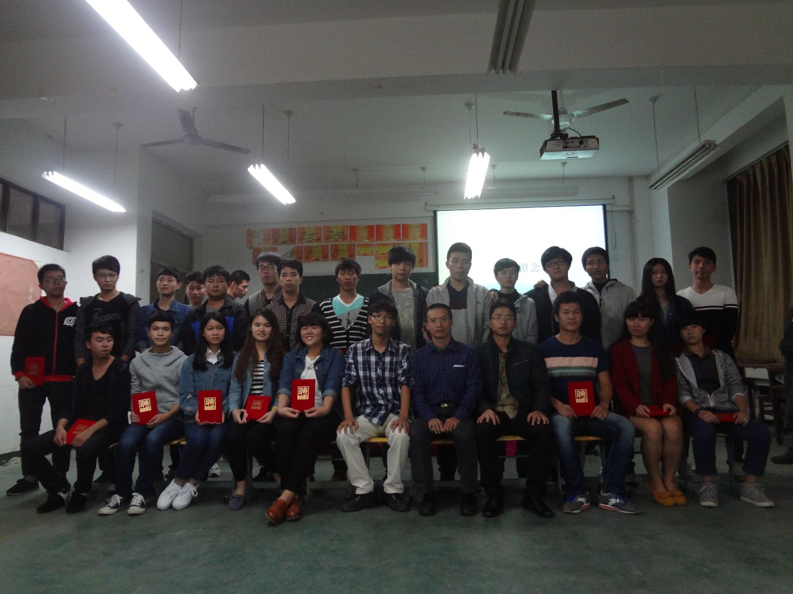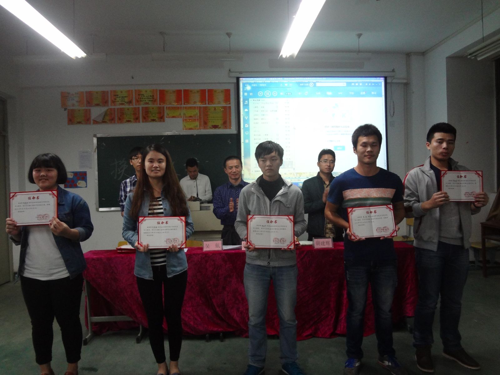 其后胡建辉老师宣读了新一届学生会成员名单。在欢快的音乐声中,领导及老师为上一届学生会成员颁发了聘书。活动结束时领导及老师与新旧学生会成员进行了合影留念!