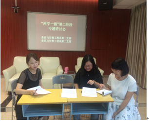 2016年9月19日下午,食品与生物工程系第二党支部全体党员在实训楼一体化教室召开了“两学一做”学习教育第二专题研讨会。本次学习研讨的主题是:“坚守纪律底线、培养高尚情操”。会前,全体党员认真研读《中国共产党章程》、《中国共产党廉洁自律准则》、《中国共产党纪律处分条例》、《习近平总书记系列重要讲话读本(2016年版)》等书目,并做好学习笔记。会上,党支部书记黄妍作重点发言,其他党员互动交流,结合各自工作讨论了作为高职教师如何做到坚守纪律底线,培养高尚情操。