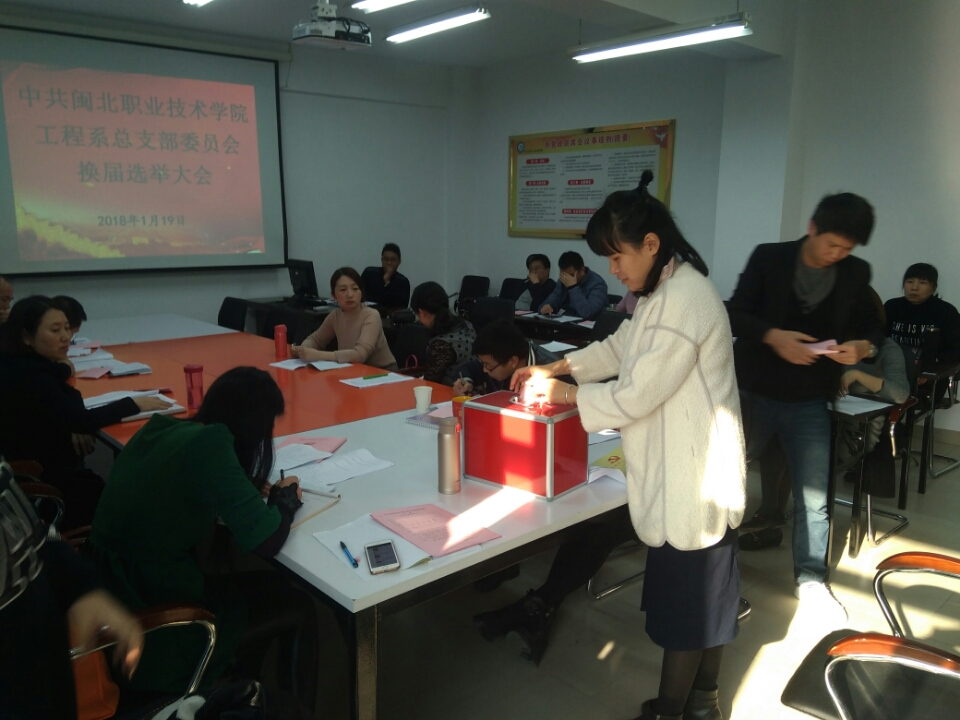 1月19日下午,我系党总支召开了总支委员会换届选举大会,会议由系常务副书记郑启阶主持,全体党员参加了会议。会议议程分两部分,一是听取和审查工程系党总支的工作报告;二是选举工程系新一届党总支委员会。
