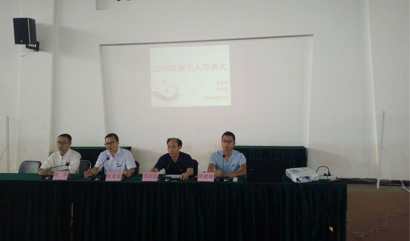 9月10日上午,在喜迎第34个教师节之际,食品系和信息系二百余名新生欢聚学校体育实训中心,隆重举行2018级新生开学典礼。