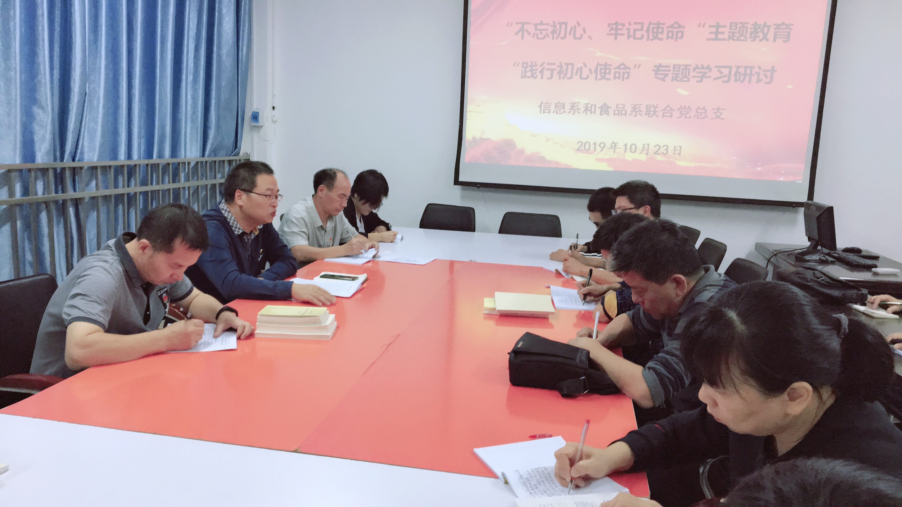 信息系和食品系联合党总支开展“不忘初心、牢记使命”主题教育“践行初心使命”专题学习研讨
