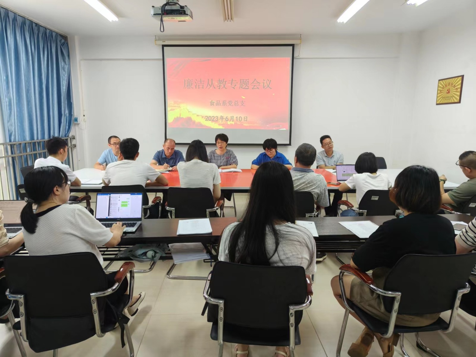 6月10日上午,食品系党总支召开党风廉政建设专题会议,学院纪委委员张完英主任及系全体教职工参加了会议。