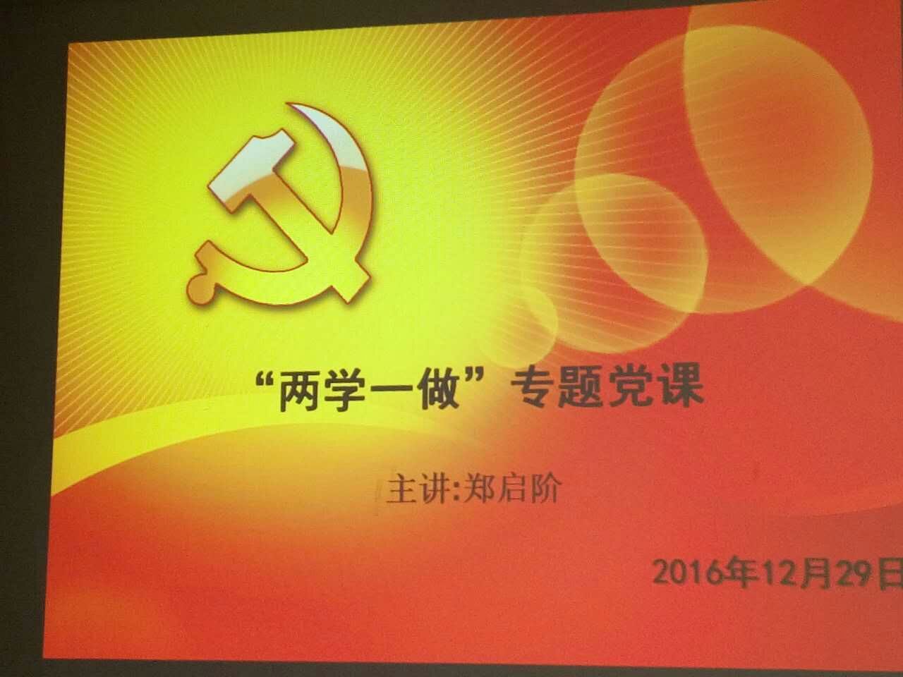 2016年12月29日上午,食品与生物工程系党总支全体总支委员在办公楼407室集中上党课,党课主题为“两学一做专题党课”,主讲为系常务副书记郑启阶同志,参加本次党课学习的我系领导还有张金良主任等。