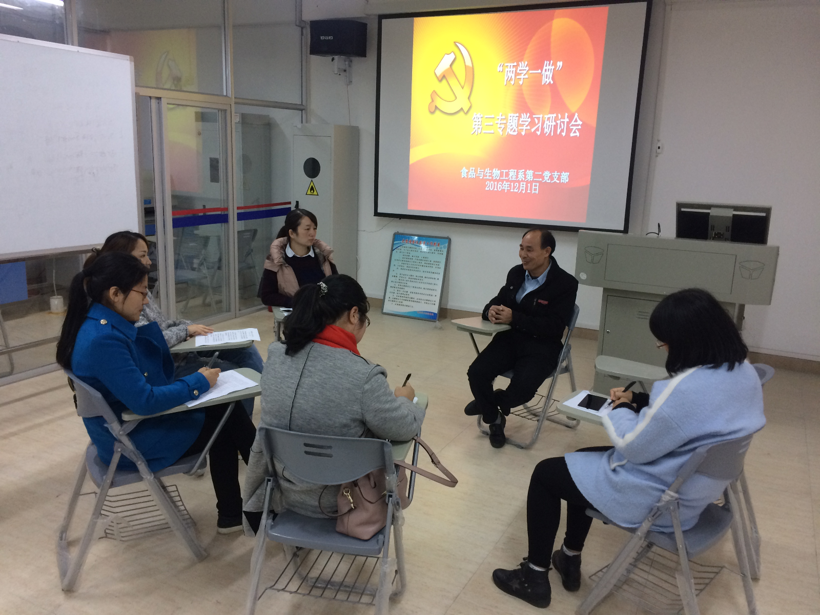 2016年12月1日下午,食品与工程系第二党支部召开了“两学一做”学习教育第三专题集中学习研讨会。会上部分党员汇报了各自的学习心得,大家互动交流,重点学习研讨了十八届六中全会精神、省第十次党代会精神、南平市第五次党代会精神、《关于新形势下党内政治生活的若干准则》及《中国共产党党内监督条例》等,学习研讨会在热烈的气氛中圆满结束