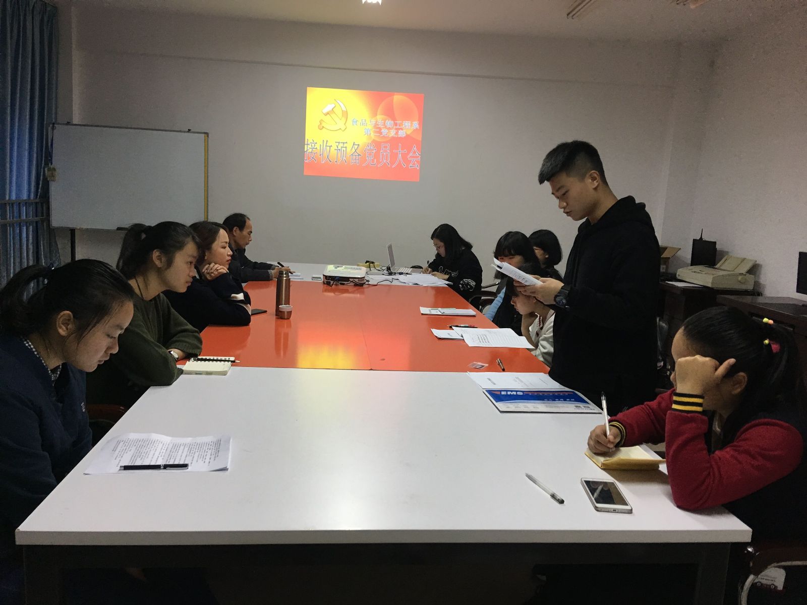 按照接收预备党员大会的程序,首先由发展对象分别宣读了入党志愿书,其次由入党介绍人对其推荐的发展对象进行了全面评价,充分肯定了他们在思想、学习、生活等方面的优秀表现,并坦诚地指出了他们各自的不足。同时与会其他党员积极发表对发展对象的看法,并一致给予了充分肯定。最后,大会通过无记名投票方式全票通过了林燕婷、何嘉伟等2位发展对象加入中国共产党。
