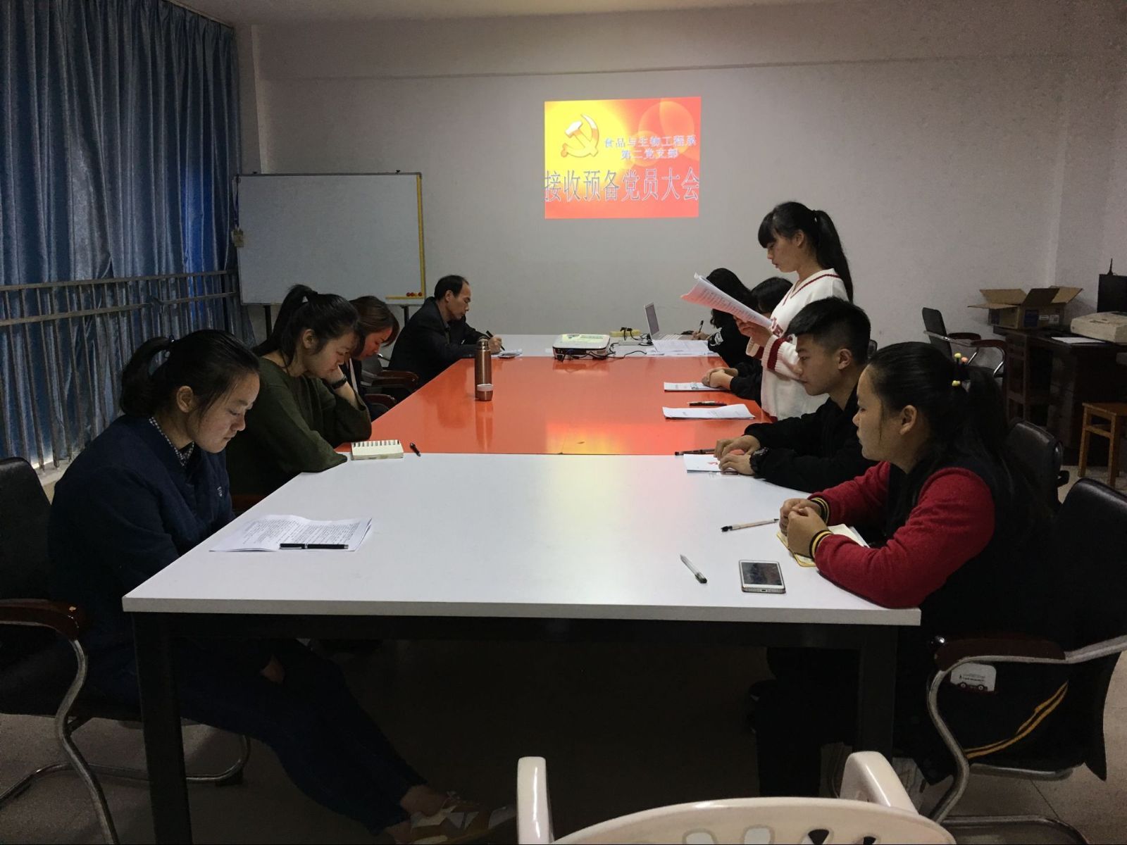 食品与生物工程系第二党支部于二0一七年一月七日上午十点,在行政楼407会议室举行了接收预备党员支部大会。党总支部郑启阶书记以及食品与生物工程系第二党支部全体党员、发展对象参加了此次会议。会议主要讨论了是否接受林燕婷、何嘉伟等2位同志为中共预备党员的问题,大会由食品与生物工程系第二党支部黄妍书记主持。