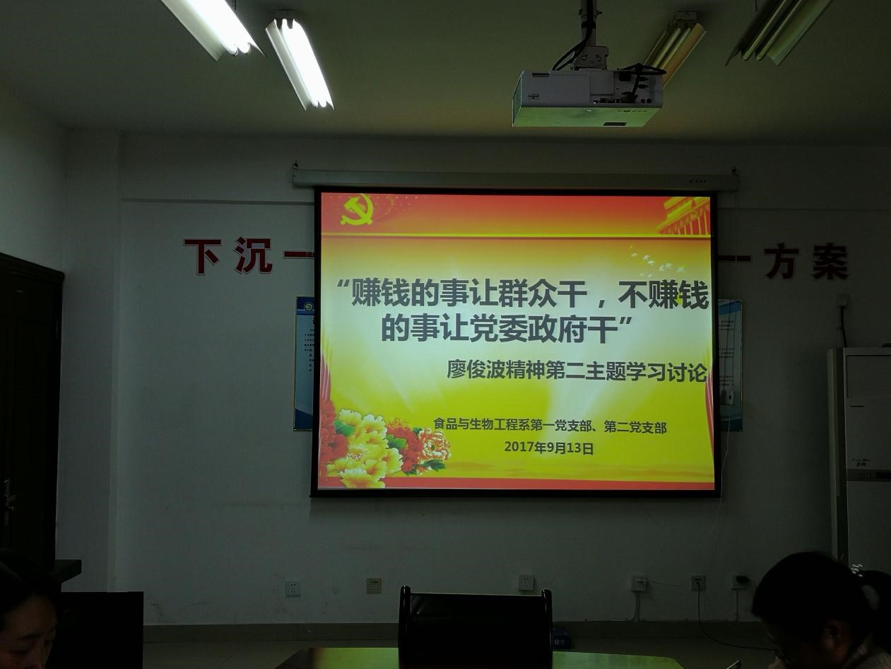 9月13日,食品与生物工程系第一、二党支部开展学习廖俊波同志第二个主题讨论活动开展了学习廖俊波同志第二个主题讨论活动。会议围绕“石圳村的变化”和“刁桂华的肝胆朋友”等故事展开讨论。与会同志踊跃发言,纷纷表示要学习廖俊波同志心系群众、勤政为民的公仆情怀;深刻领会廖俊波同志“赚钱的事让老百姓干,不赚钱的事让党委政府干”的精神实质。