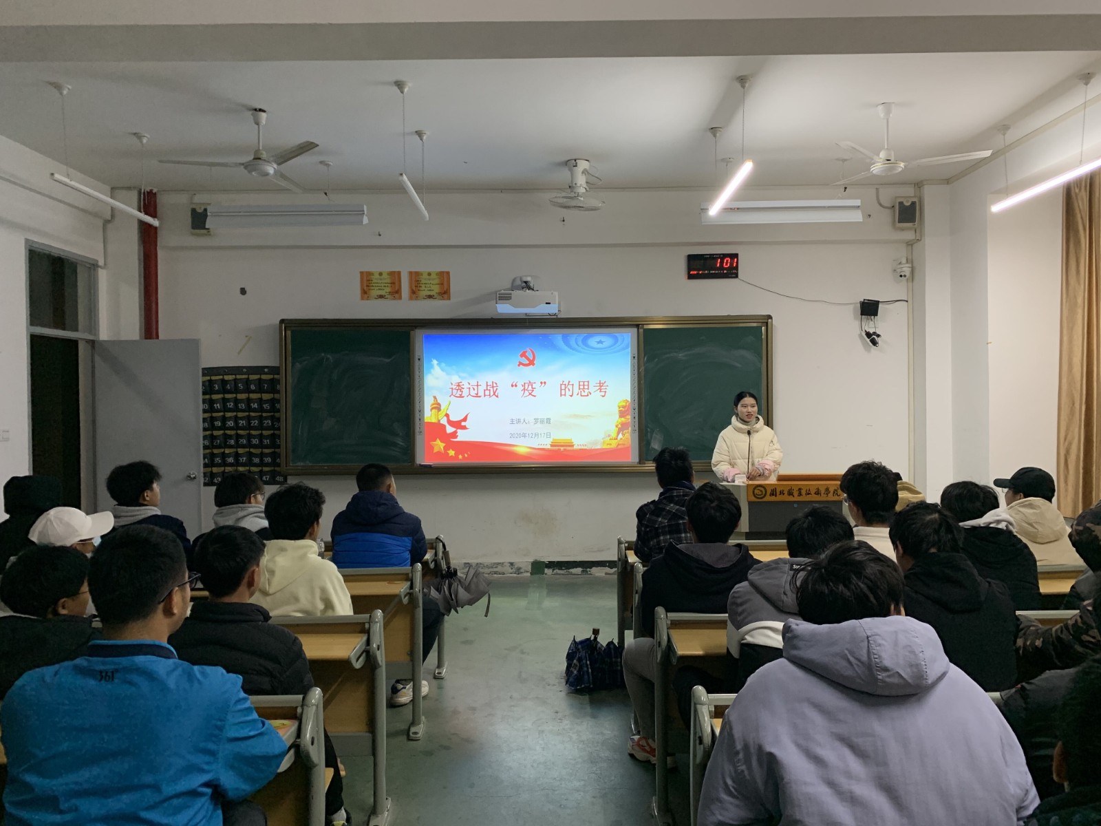 第二党支部书记胡建辉、辅导员宋智伟、林锐敏、罗丽霞分别以《建党99周年》、《治国理政第三卷之推动全面深化改革实现新突破》、《“疫”后的青年担当》、《透过战‘疫’的思考》为题开展党团课培训。