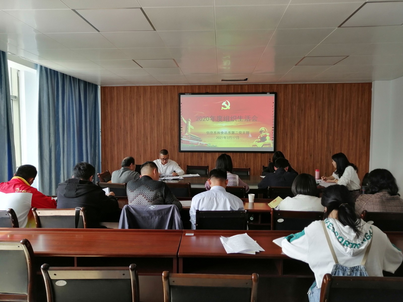 3月17日,信息系和食品系第二党支部召开2020年度专题组织生活会暨民主评议党员活动,支部全体党员参加了会议。
