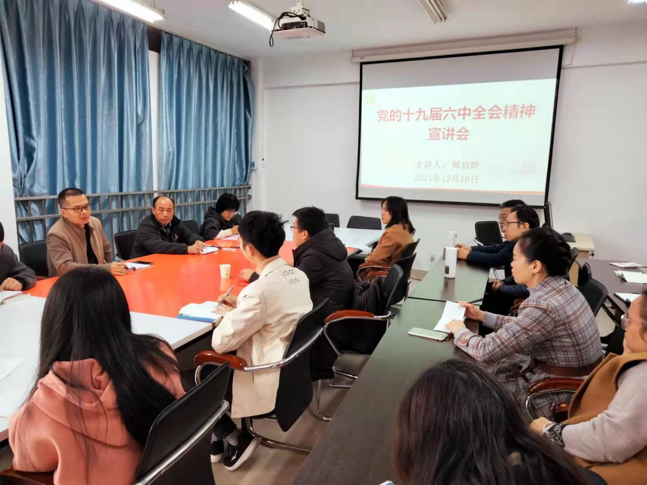 12月16日上午,信息系和食品系联合党总支召开十九届六中全会精神宣讲会,系党总支书记郑启阶作了宣讲报告,两系教职工参加了宣讲会议。