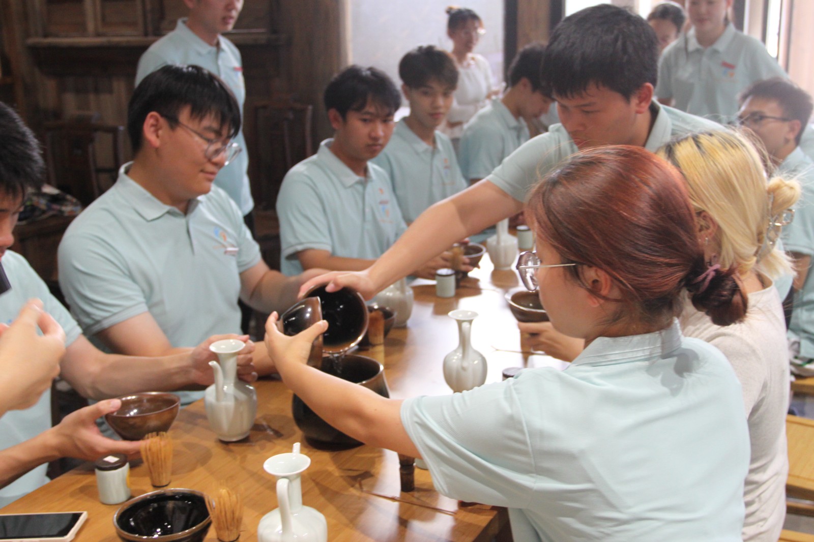 7月6日,食品系暑期“三下乡”社会实践队迈入了第三天的活动日程。实践队首先踏足建州宋式点茶非遗传习所,由资深茶艺师亲自指导,向同学们系统阐释了宋式点茶的制作步骤、技艺精髓及其承载的深厚文化内涵。同时,特别设置实践环节,让同学们亲手操作,切实体验从择茶、煮水、冲泡至品茗的完整过程,从而深刻领会古人所倡导的“和、敬、清、寂”的茶道哲学。活动现场气氛融洽,队员们不仅收获满满,更拓宽了视野,增长了知识。