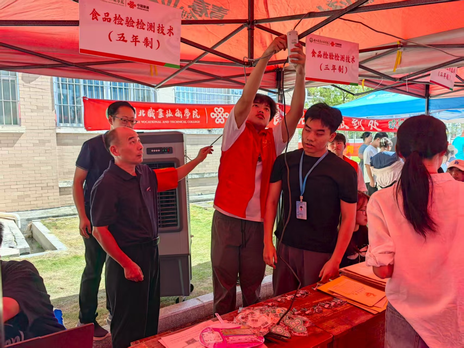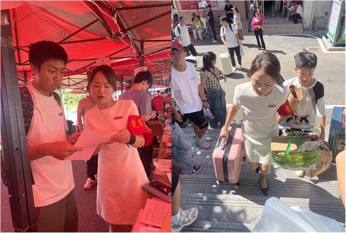 在迎新现场,各级领导关怀,详细了解新生报到流程、人数及服务保障情况,对党支部的志愿服务工作给予肯定并向坚守岗位的党员同志们表示慰问,叮嘱大家在服务新生的同时注意防暑。校外党员志愿者早早驻守动车站迎新点,举着指引牌迎接远道而来的新生,协助办理转运手续,让新生一出站就感受到学校的温暖。校内党员志愿者既有耐心为新生及家长解答报到细节、专业学习等疑问,也有主动接过沉重的行李,陪同新生前往宿舍,即使汗水浸湿衣衫也毫无怨言,用热情与担当诠释党员本色。