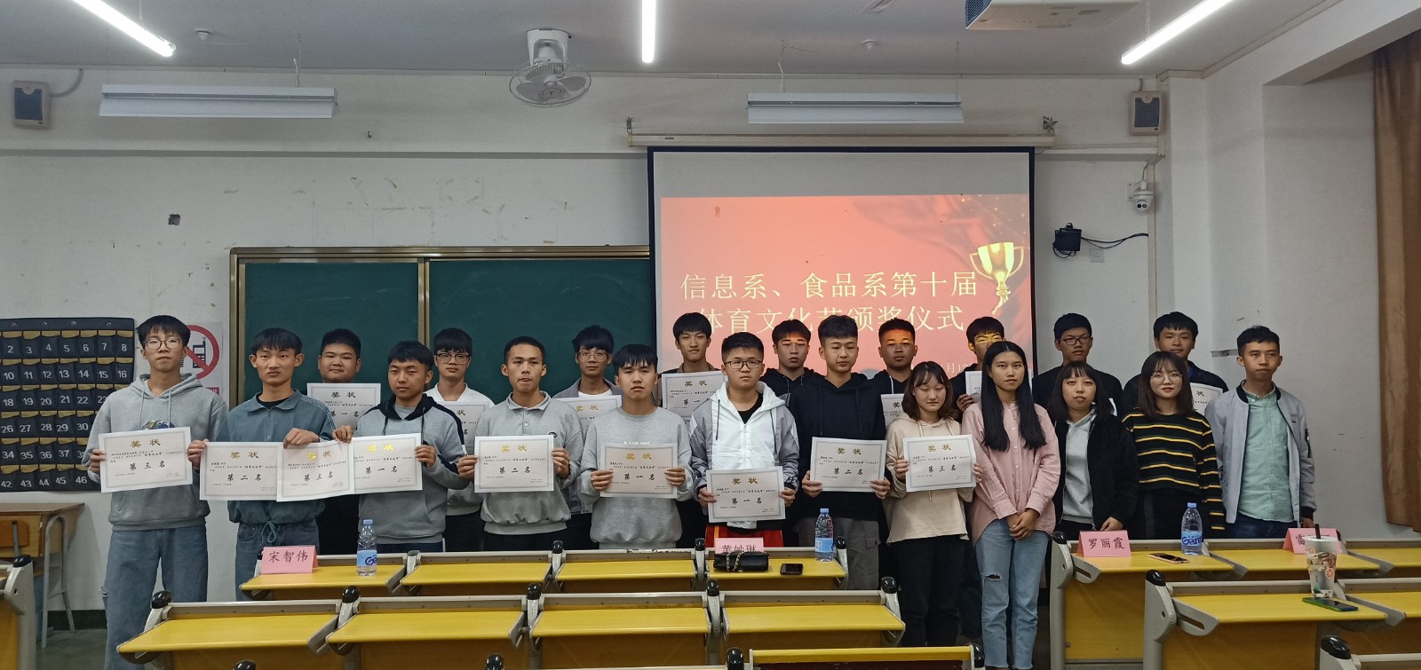 经过激烈的角逐,2019级软件技术班篮球队、2019级机电一体化技术班篮球队、2017级食品营养与检测(五年专)班篮球队分获男子篮球比赛一、二、三名;2019级计算机应用技术二班、2018级计算机应用技术二班、2018级机电一体化班分获拔河比赛一、二、三名;林旭佶、庄莹、江兴碧同学分别获跳绳比赛一、二、三名;陈任航、陈全辉、黄荣志同学分别获男子三分投篮比赛一、二、三名;郭达意、林朝鑫、李伟宏同学分别获羽毛球比赛一、二、三名;黄晨阳、郑运鸿、朱丙文同学分别获乒乓球比赛一、二、三名;马维利、黄晨阳、陈庆畴同学分别获象棋比赛一、二、三名。