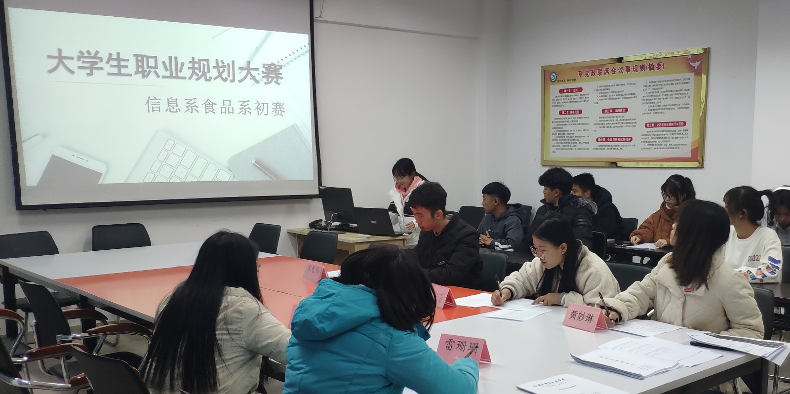 为了帮助学生合理地规划、利用大学时光,进行正确的职业定位,我系于2019年12月5日晚在行政楼407室举办2019年大学生职业生涯规划大赛,学生科全体成员出席并担任评委。