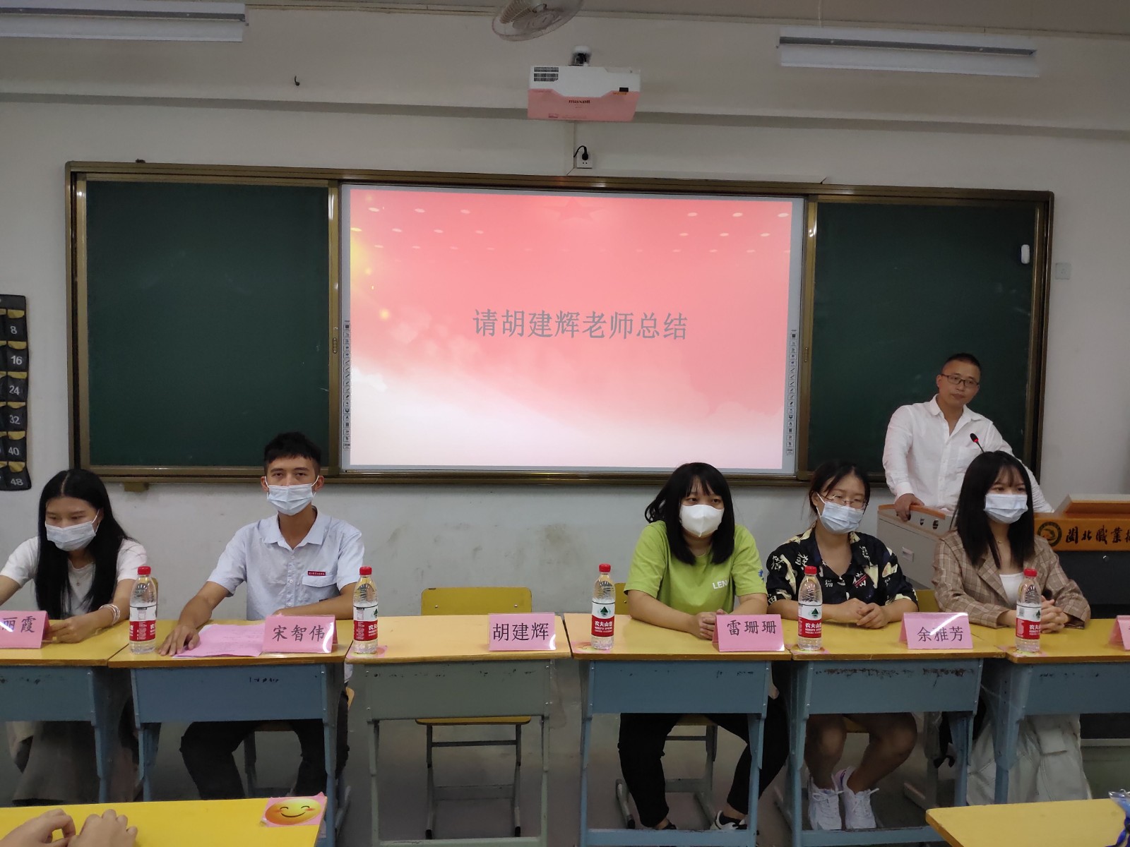 最后胡建辉老师对活动进行总结发言。他首先肯定了上一届学生干部的工作,并对新一届学生干部提出要求和希望:一是以为同学服务、为班级、系、学院服务作为自己的工作动力,在实践中锻炼自己,提升自己的能力;二是服从工作安排,团结一致,既各司其职,又要通力配合;三是勤奋工作,细致认真,从小处着手,做好每一件工作;四是发挥主观能动性,积极创新创造,做出自己的工作特色。