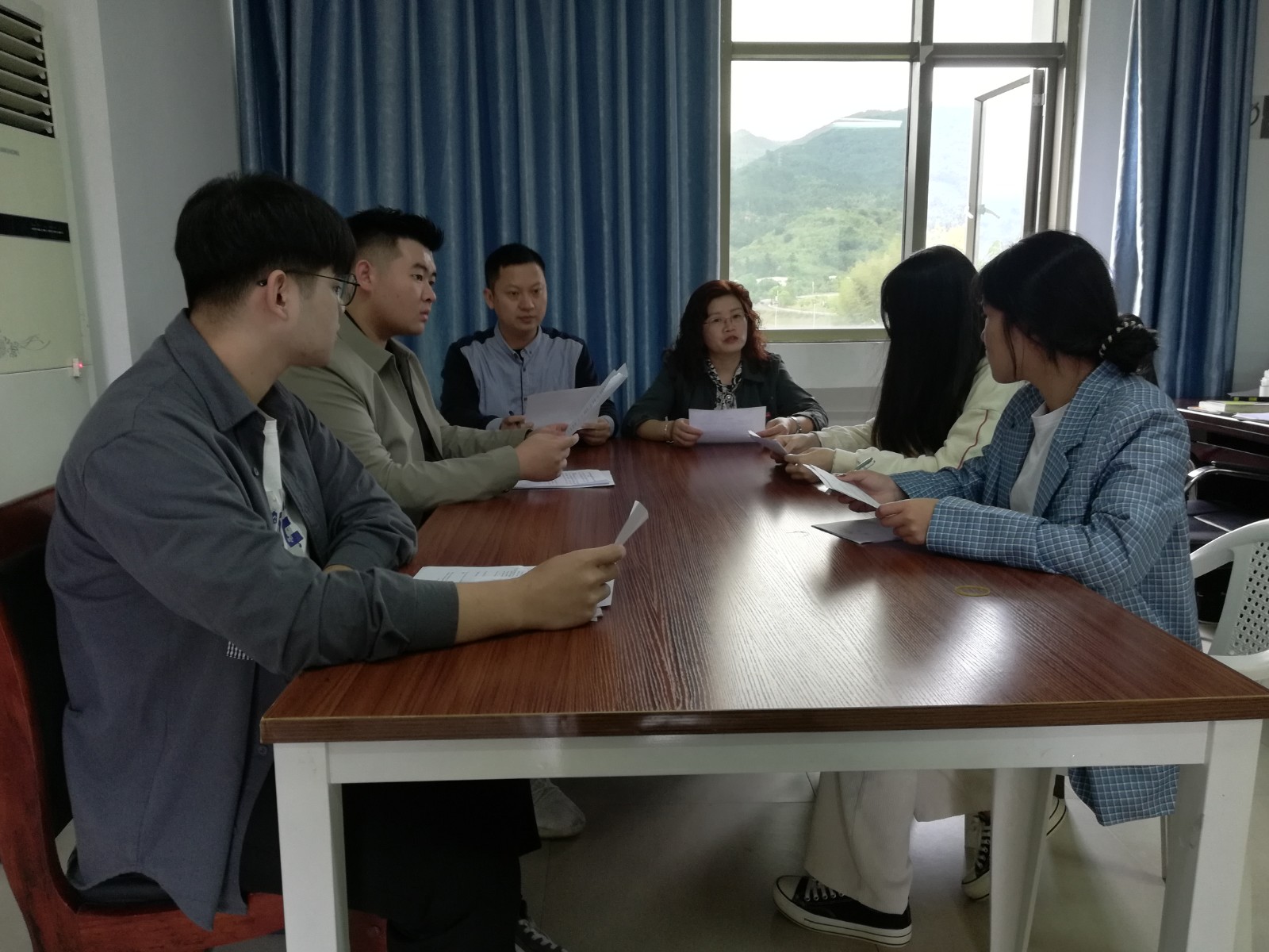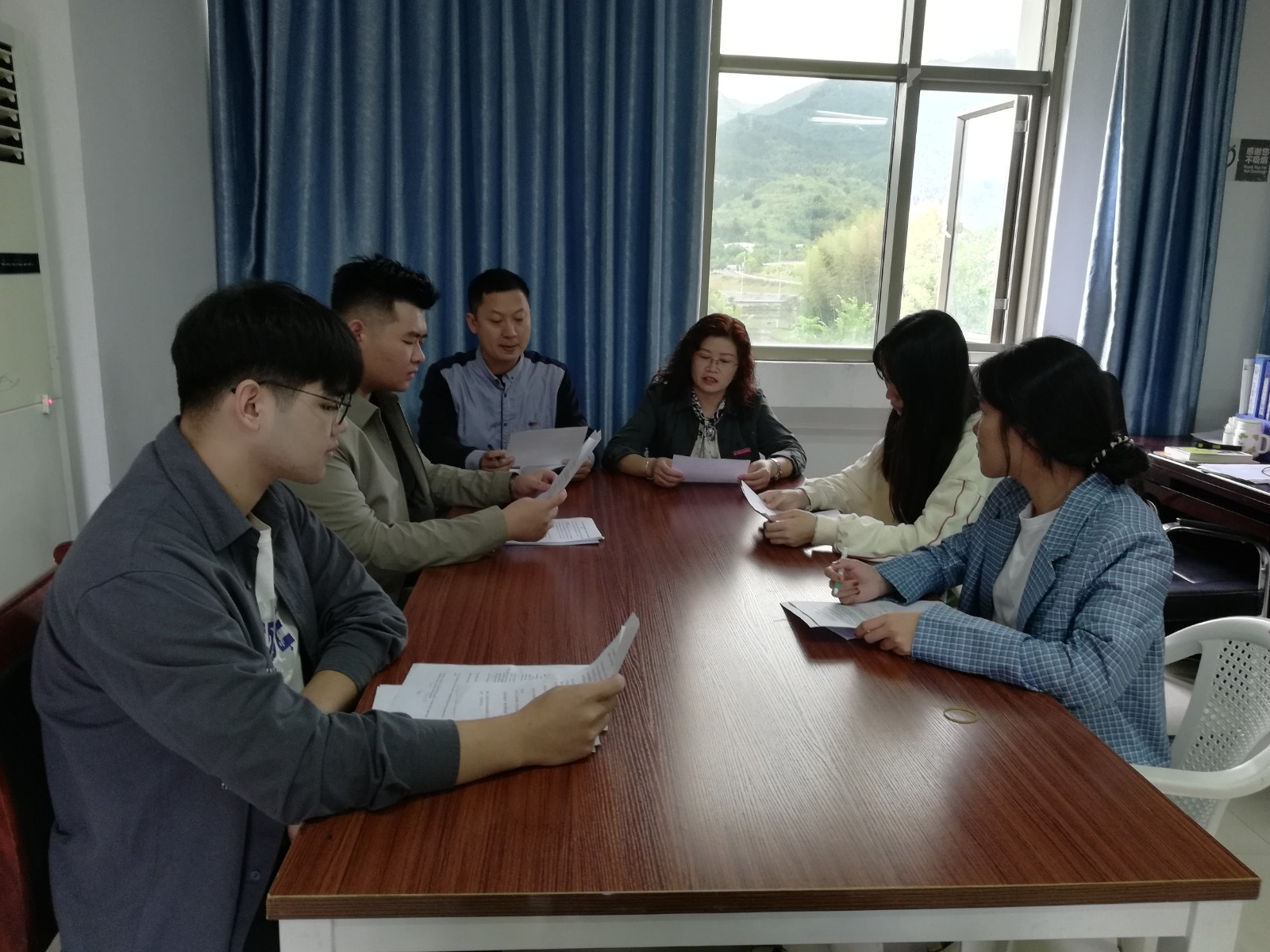 2021年10月20日中午,思政部英语教研室在行政楼310办公室召开南平市职业院校英语技能大赛的主持人选拔第二次指导会议,并由郑桂芳、陆强老师再次指导英语社团工作。
