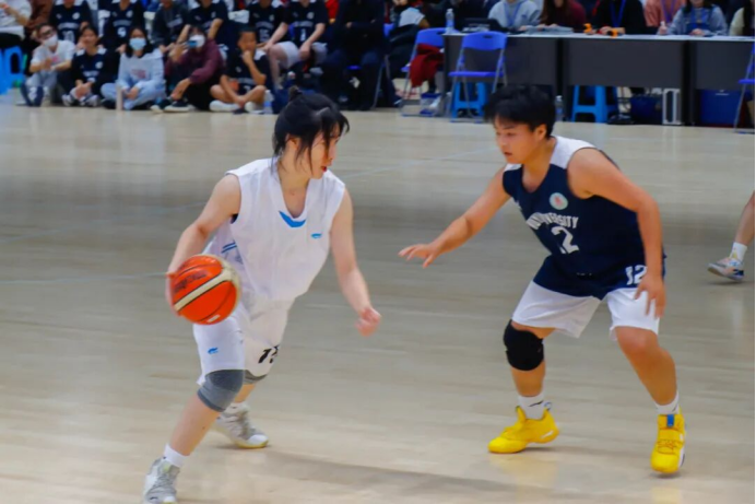 比赛中,双方女篮队伍的大学生球员们分别上场。随着裁判员一声哨响,篮球被高高抛起,双方球员展开了激烈的角逐,队员们的精彩表现和积极拼搏,体现了青年奋发向上的精神状态,赢得了在场师生观众的阵阵掌声和加油呐喊。