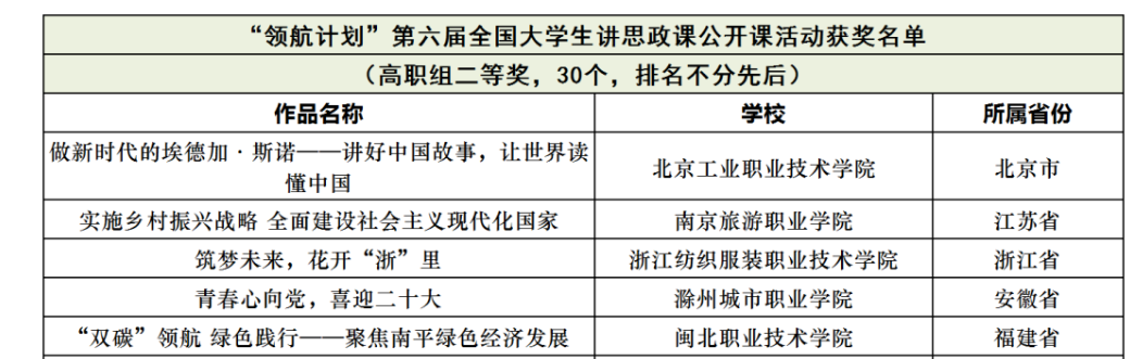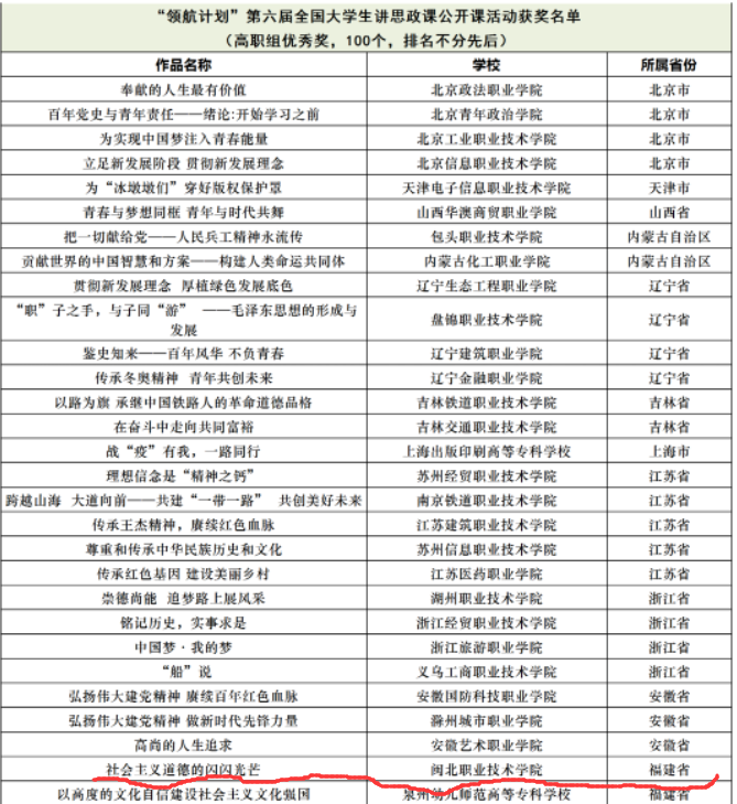 思政部范芳芳老师指导的《“双碳”领航,绿色践行——聚集南平绿色经济发展》作品,在2022年教育部开展习近平新时代中国特色社会主义思想大学习领航计划主题教育活动——第六届全国大学生讲思政课公开课活动获奖中,荣获全国高职组二等奖,林文凤老师指导的《社会主义道德的闪闪光芒》作品荣获全国高职组优秀奖。实现Beat365思政质量工程首次国奖的新突破!!!
