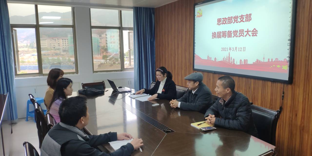 2021年3月12日上午,思政部支部在行政楼607会议室召开支部换届筹备大会,会议由党支部书记郑桂芳同志主持。