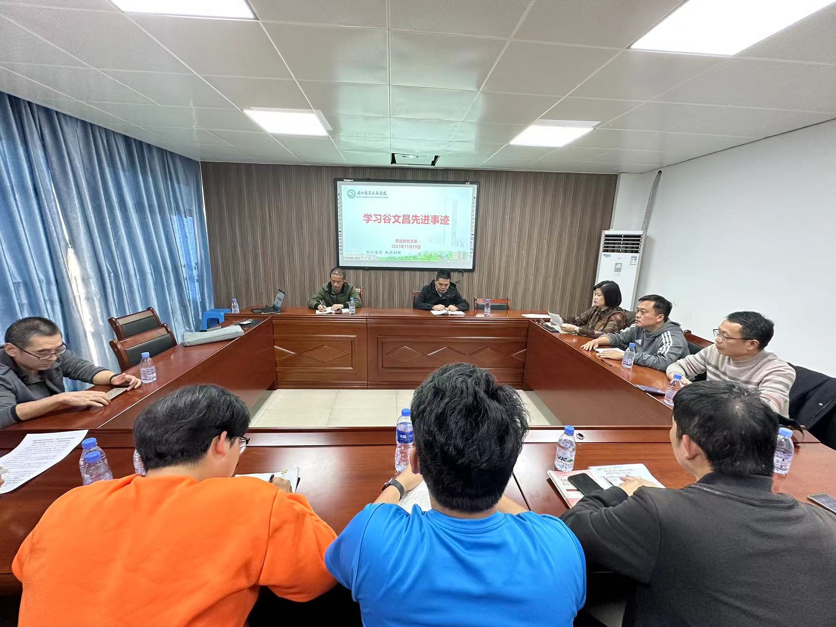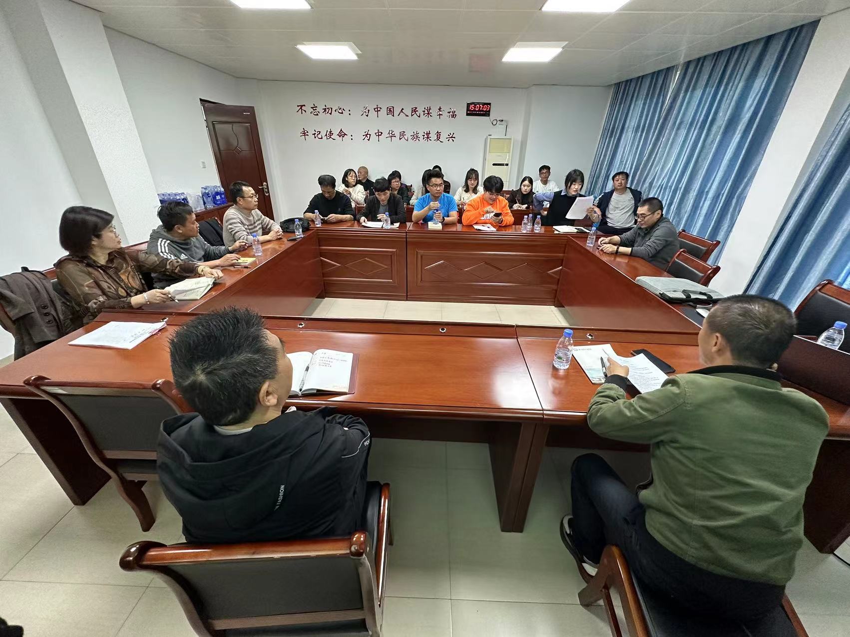 2023年11月29日下午,思政部党支部在行政楼607会议室召开学习贯彻习近平新时代中国特色社会主义思想主题教育理论学习会议,全体支部党员参加了会议,会议由党支部书记邱海松同志主持。