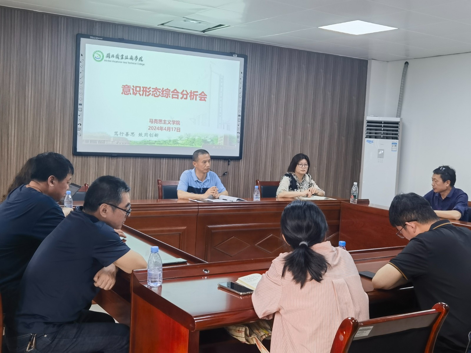 2024年4月17日下午,马克思主义学院在行政楼607会议室召开2024年意识形态工作综合分析会,全体教职工参加了会议,会议由马克思主义学院院长邱海松同志主持。