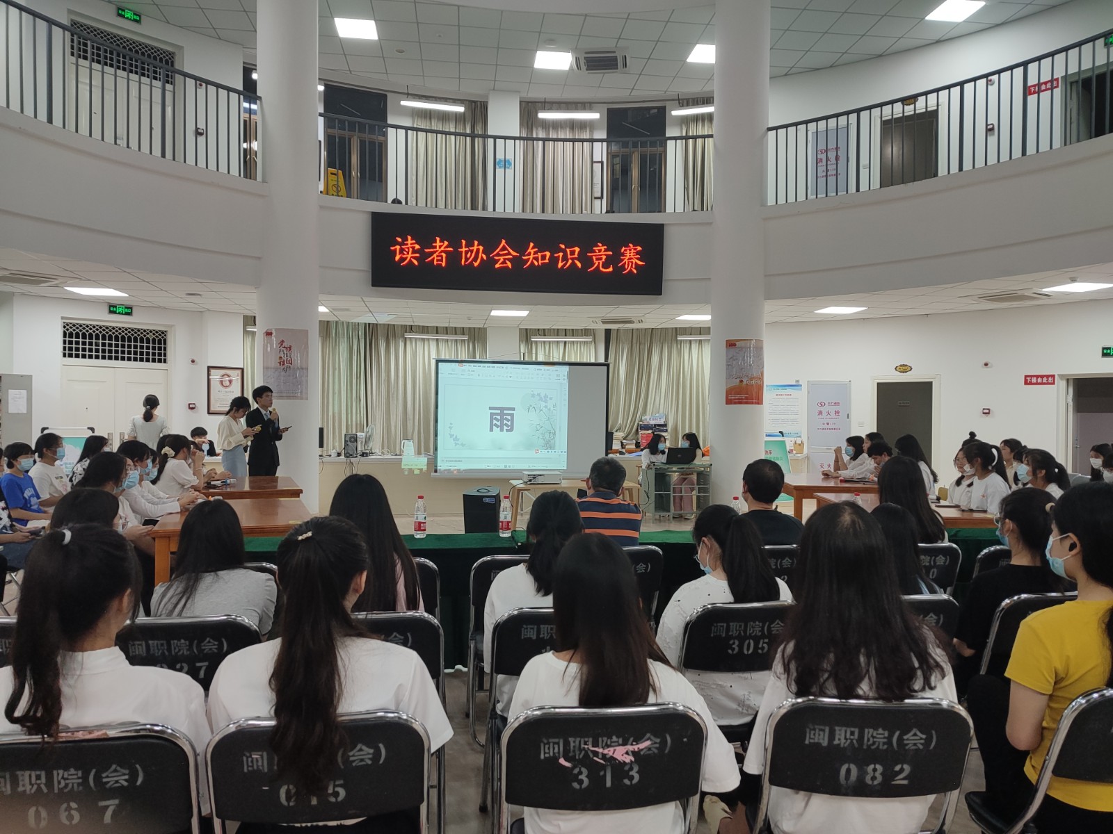 为落实习近平总书记“致首届全民阅读大会举办的贺信”精神,2022年5月20日晚,图书馆、读者协会举办了“让阅读成为习惯,让校园溢满书香”主题读书知识竞赛活动。图书馆馆长詹茂光,后勤处处长、社团挂点党员黄长松,图书馆苏丹霞老师以及70余位学生参加了活动。