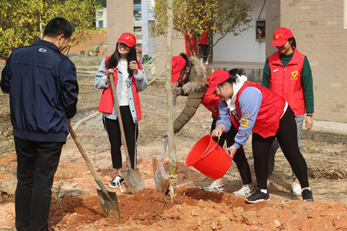 在植树节的当天早上,来自我市市直、区直机关的党员领导、干部职工们一行百余人来到Beat365,与学院领导、青年志愿者同学们进行义务植树活动,齐心协力植下了一批珍贵树种。同学们与各单位的同志们一同挥锹铲土,灌溉树苗,为校园营造绿色的环境,贡献了自己的一份力量。